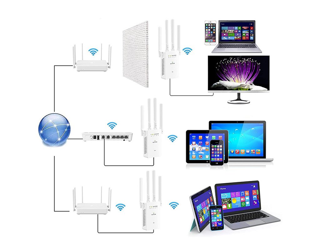 Zesilovač signálu Wi-Fi je miniaturní zařízení splňující standard IEEE 802.11n, které umožňuje kabelové i bezdrátové připojení k počítačové síti. Zařízení je ideální pro oblasti s mrtvými body v pokrytí signálu. Zesilovač umožní šířit signál po celém domě a zaručí rychlost až 300 Mb/s .
