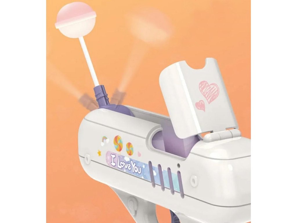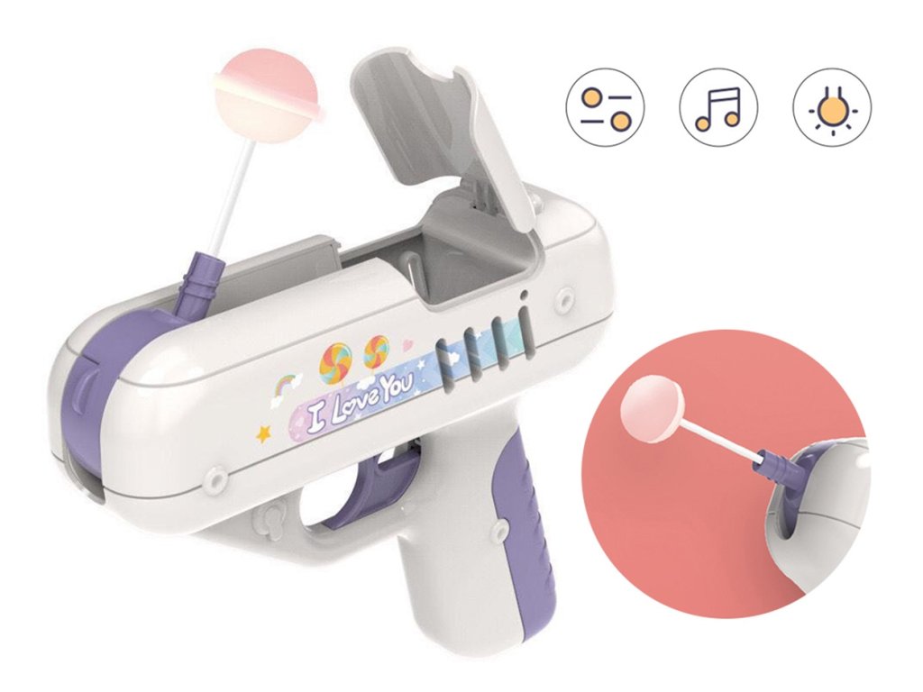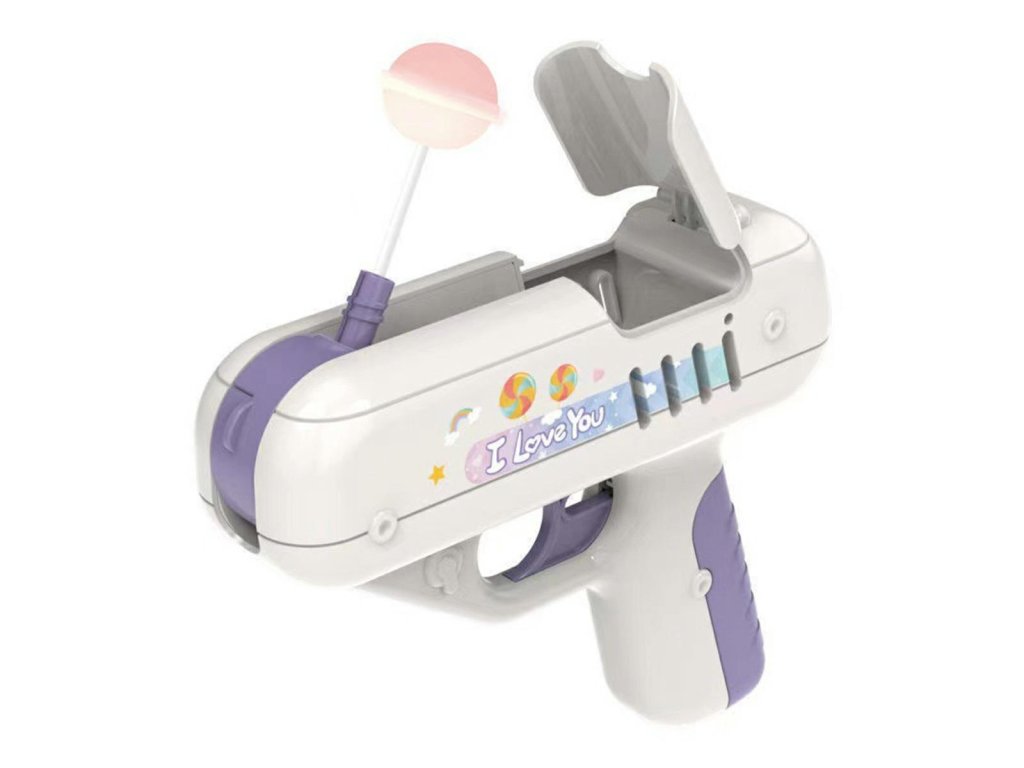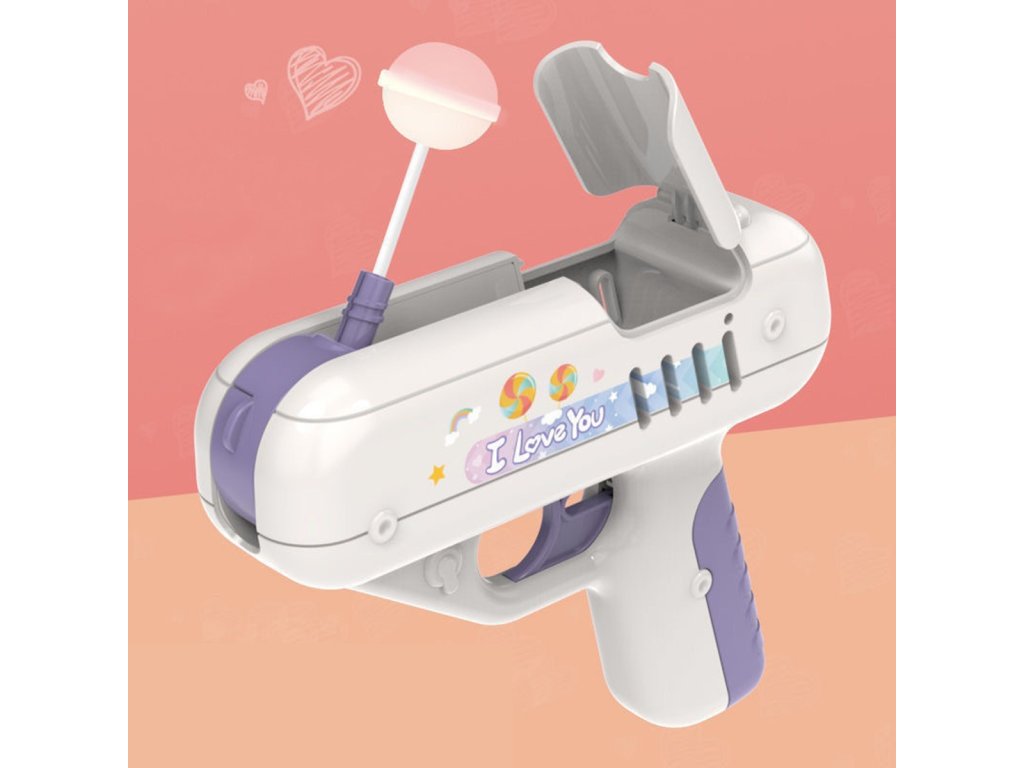 Skvělá hračka pro děti. Překvapivá lízátková pistole. Když stisknete spoušť, zpod chlopně v horní části hračky vystřelí lízátko. Hračka se velmi snadno používá a je napájena 3 vyměnitelnými bateriemi LR44. Dopřejte svému dítěti sladké překvapení :)