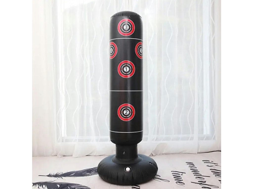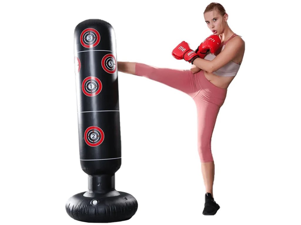Tréninkový boxovací pytel se sadou příslušenství. Vynikající nástroj pro procvičování bojových dovedností. Funguje také dobře jako prostředek na zmírnění stresu. Jednoduše jej nafouknete, přiložíte k podstavci vhodnou zátěž a je připraven k použití. Sada je vyrobena z odolného materiálu a obsahuje také boxerské rukavice a pumpičku pro nafouknutí pytle.