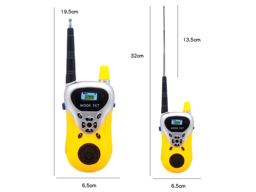 Klasická krátkovlnná vysílačka, poskytne skvělou zábavu na otevřených prostranstvích a pohodlnou komunikaci na vzdálenost až 100 metrů (na prostranstvích). Hračka se velmi snadno používá, takže s ní nebudou mít problémy ani menší děti. Dosah zařízení navíc zvyšuje výsuvná anténa a je napájen 3 AA bateriemi.