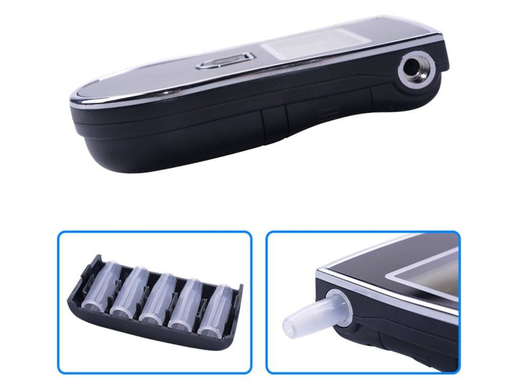 Praktický digitální alkoholtester s náustkem - užitečné zařízení pro každého řidiče. Alkoholtester AL6 je bohatá sada vybavená dalšími 5 vyměnitelnými náustky a krytem. Přístroj se velmi snadno používá, pro jeho spuštění stačí podržet tlačítko na přední straně a postupovat podle pokynů na přehledném, podsvíceném LCD displeji. Speciální funkce pro úsporu baterie zajistí dlouhé a pohodlné používání alkoholtesteru. Už nemusíte navštěvovat nejbližší stanici MPK a dispečink. Zkontrolujte si, zda jste připraveni k řízení, a během několika desítek sekund se zbavte všech pochybností, než se posadíte za volant!
