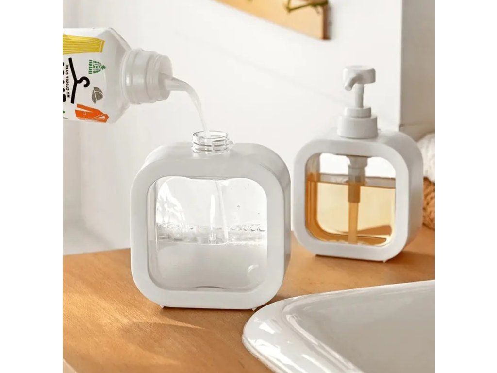 Praktický dávkovač koupelnového mýdla s pumpičkou. Velmi usnadňuje a urychluje dávkování správného množství tekutého mýdla nebo prostředku na mytí nádobí – stačí lehce stisknout a část tekutiny vyteče z dávkovače. Průhledná nádržka usnadňuje kontrolu obsahu a pohodlné doplňování. Plní se velmi rychle – stačí odšroubovat pumpičku z dávkovače a nalít tekutinu otvorem – není potřeba žádné další nářadí.