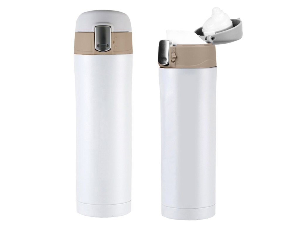 Vysoce kvalitní termohrnek vyrobený z nerezové oceli a kvalitního plastu. Díky tenkému a ergonomickému designu velmi bezpečně padne do ruky. Má také kryt ovládaný pohodlným tlačítkem. Perfektní pro uchování studených i teplých nápojů díky svým dobrým tepelně izolačním vlastnostem!