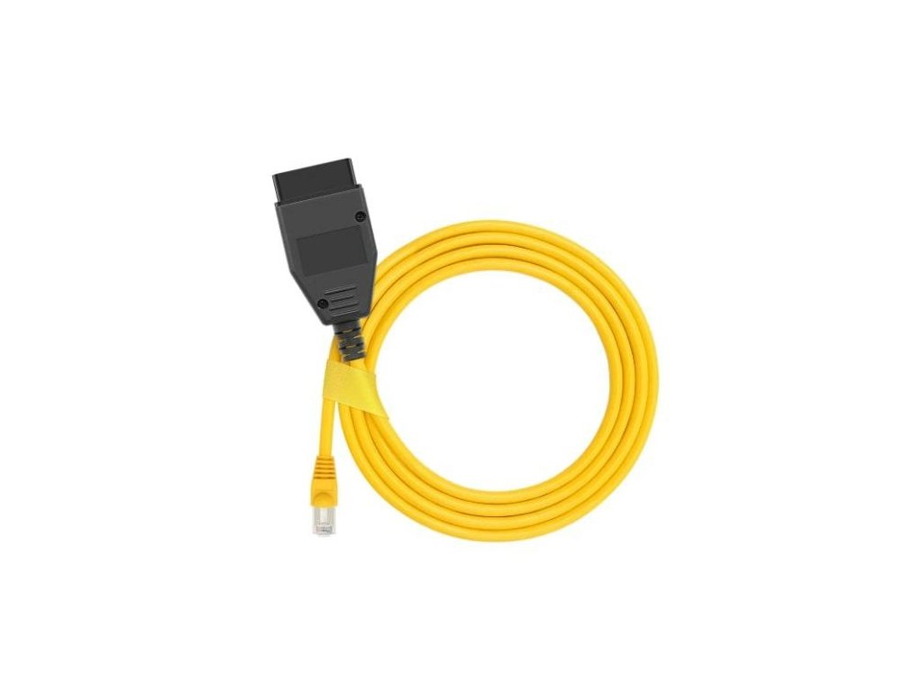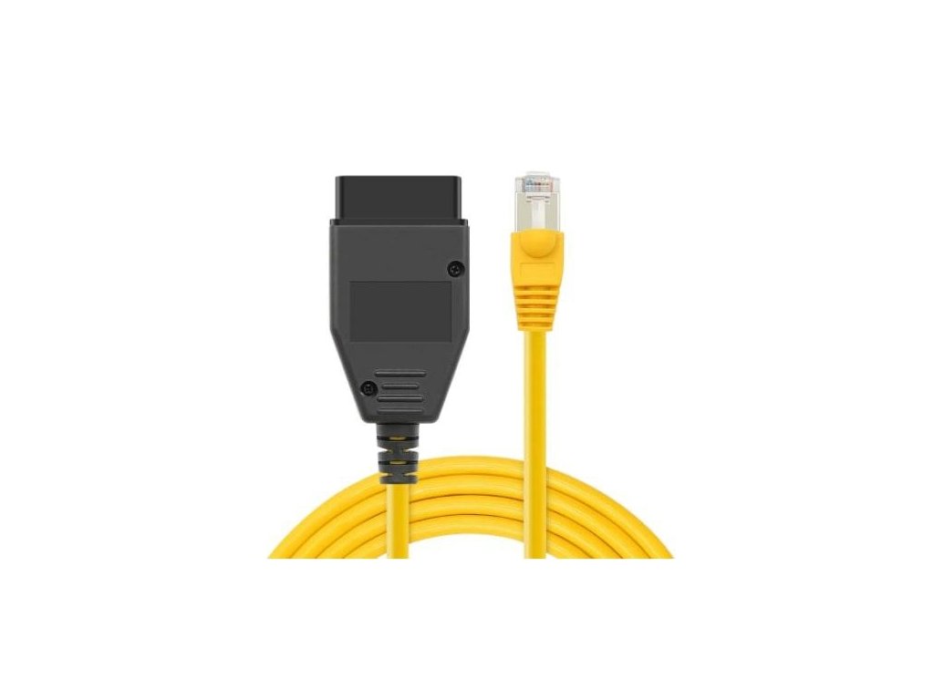 Interfejs diagnostyczny BMW ENET (Ethernet → OBD) przeznaczony do pojazdów serii F, G oraz I. Umożliwia pełną diagnostykę, kodowanie, programowanie modułów i aktualizację oprogramowania.