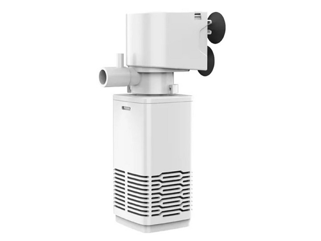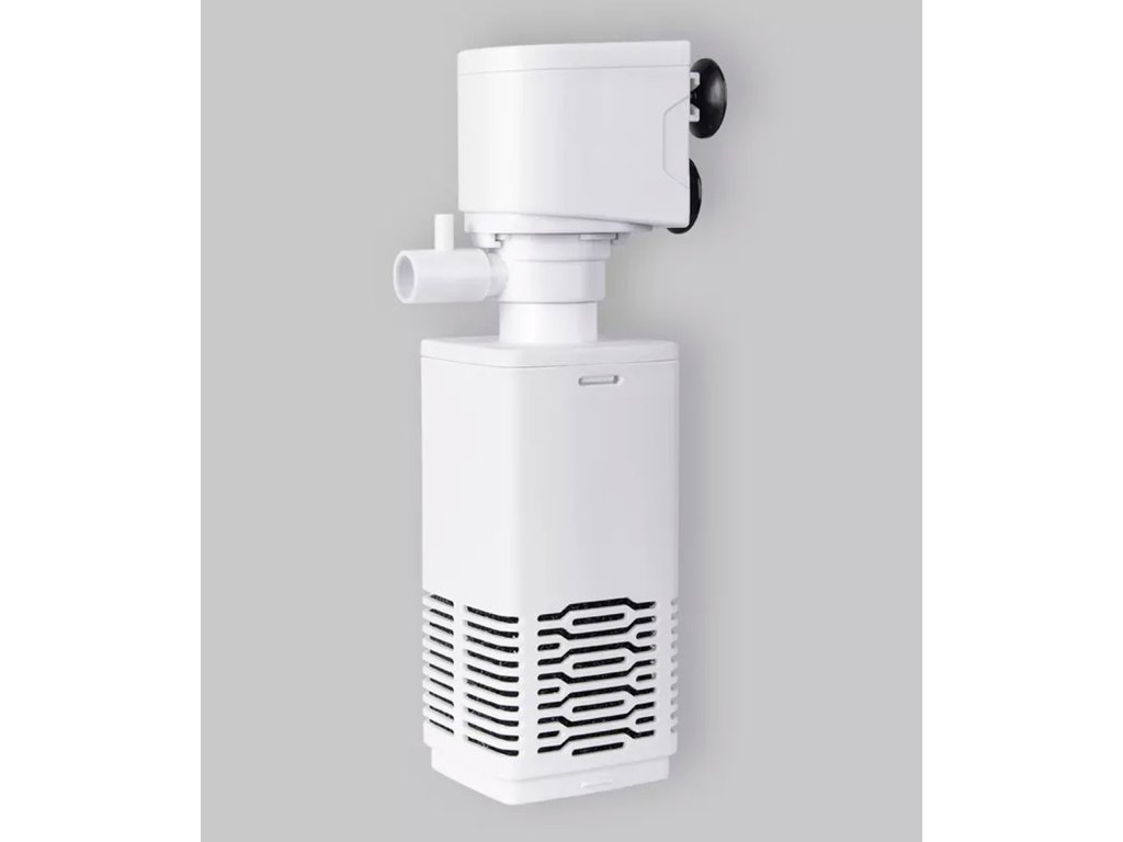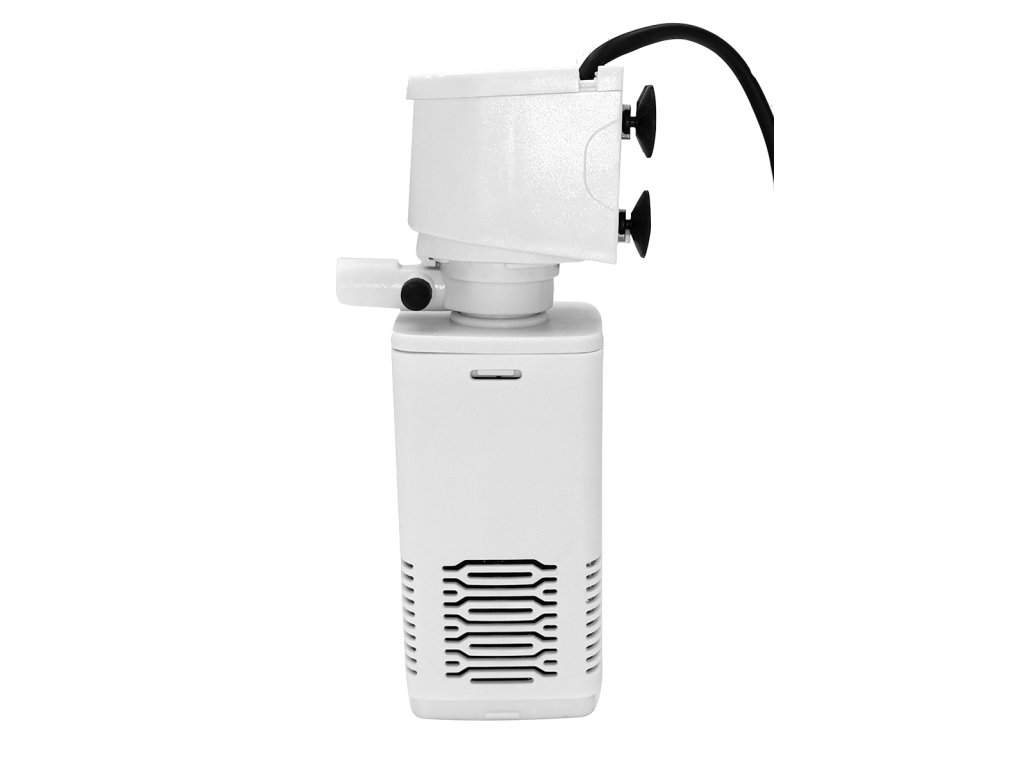 Kompaktowy, wewnętrzny filtr gąbkowy do akwarium. Nie zajmuje wiele miejsca w akwarium i jest bardzo wygodny w użyciu (zasilany z sieci elektrycznej). Doskonale sprawdzi się w niewielkich akwariach o pojemności od 10 do 60 litrów (wydajność na poziomie 400 litrów wody na godzinę). Wyposażony w solidne przyssawki, które utrzymują go na ścianie akwarium oraz napowietrzacz. Filtr gąbkowy można łatwo wymienić po zdjęciu dolnej części obudowy.