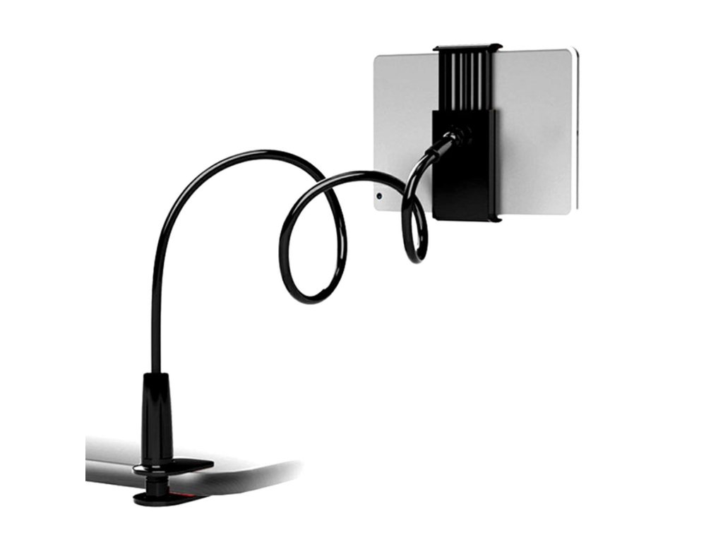 Univerzální, bezúdržbový držák pro chytré telefony a tablety. Zajišťuje správný komfort používání zařízení, aniž by nás rušil při provádění každodenních činností. Vybaveno dlouhým a flexibilním stativem, který lze libovolně ohýbat a polohovat naše vybavení podle aktuální potřeby! Díky speciálnímu designu rukojeti je ideální pro domácí i cestovní použití.