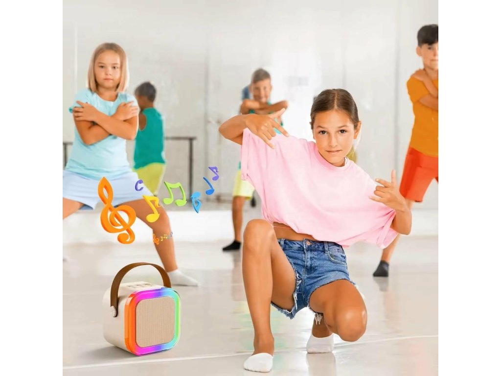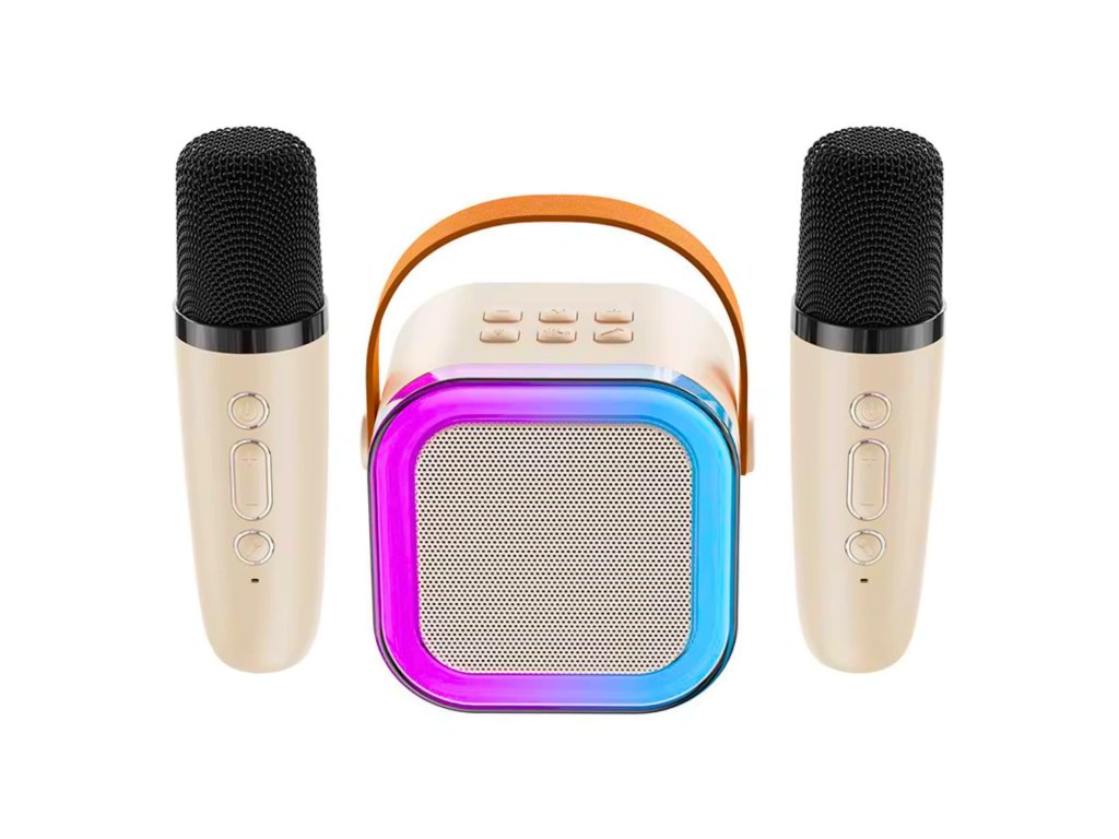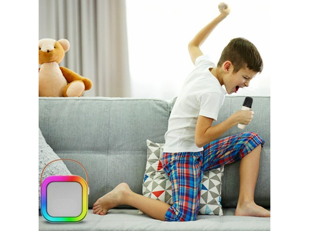 Tento přenosný karaoke systém je perfektním řešením pro domácí večírky, dětské aktivity, setkání s přáteli nebo dovolenou. Sada obsahuje Bluetooth reproduktor s RGB LED osvětlením a dva bezdrátové mikrofony s efektem Magic Voice. Zařízení podporuje více zdrojů zvuku – Bluetooth 5.0, USB, microSD, 3,5mm AUX a MP3 . Díky vestavěné baterii a kompaktním rozměrům si ho snadno vezmete kamkoli s sebou.