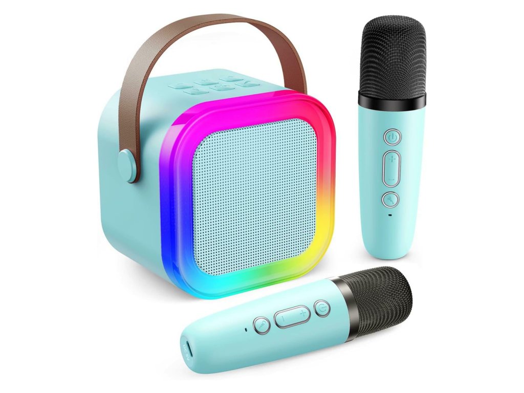 Tento přenosný karaoke systém je perfektním řešením pro domácí večírky, dětské aktivity, setkání s přáteli nebo dovolenou. Sada obsahuje Bluetooth reproduktor s RGB LED osvětlením a dva bezdrátové mikrofony s efektem Magic Voice. Zařízení podporuje více zdrojů zvuku – Bluetooth 5.0, USB, microSD, 3,5mm AUX a MP3 . Díky vestavěné baterii a kompaktním rozměrům si ho snadno vezmete kamkoli s sebou.