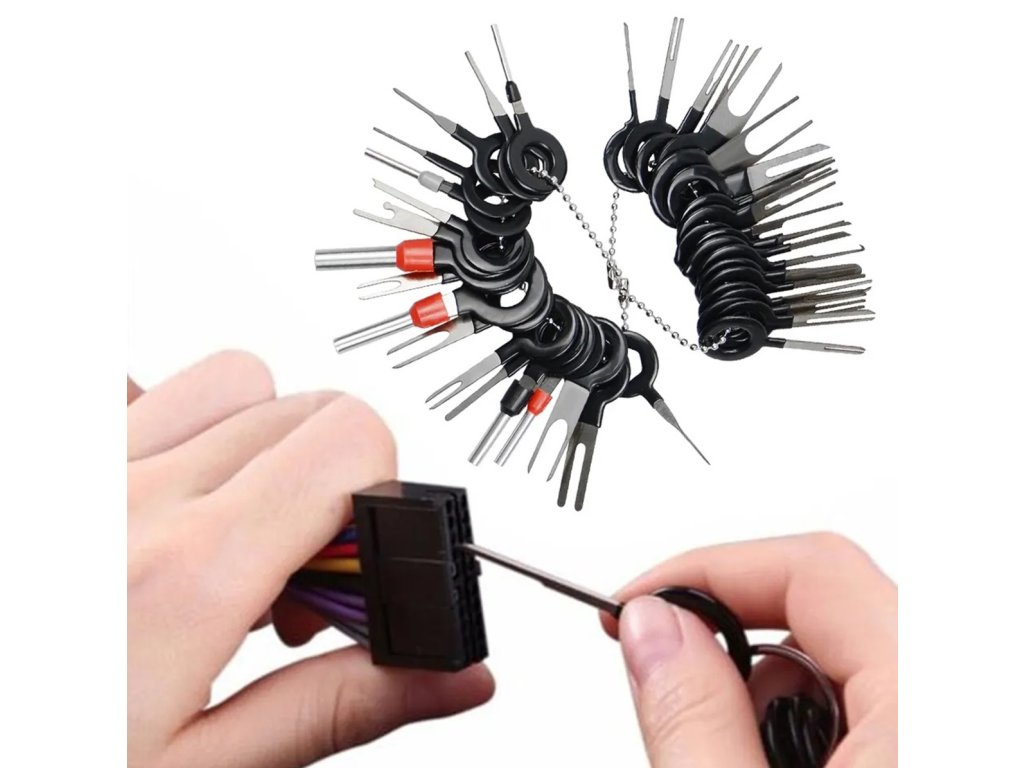 Univerzální sada vytahovačů konektorů s 66 piny. Sada obsahuje různé klíče (jednoduché, dvojité, trubkové, trojité a čtyřnásobné) s různými průměry. Jsou ideální pro opravy elektrických konektorů a kabeláže. Nezbytná výbava pro každého, kdo opravuje automobilové elektrické systémy nebo počítačové vybavení.