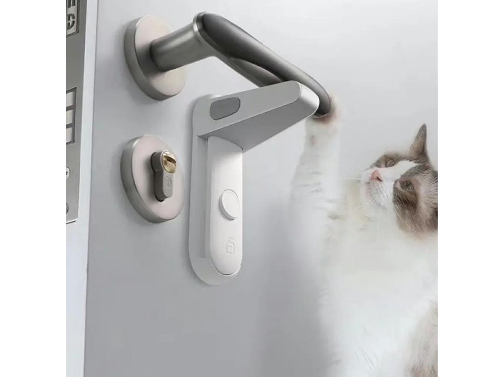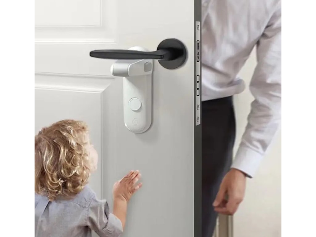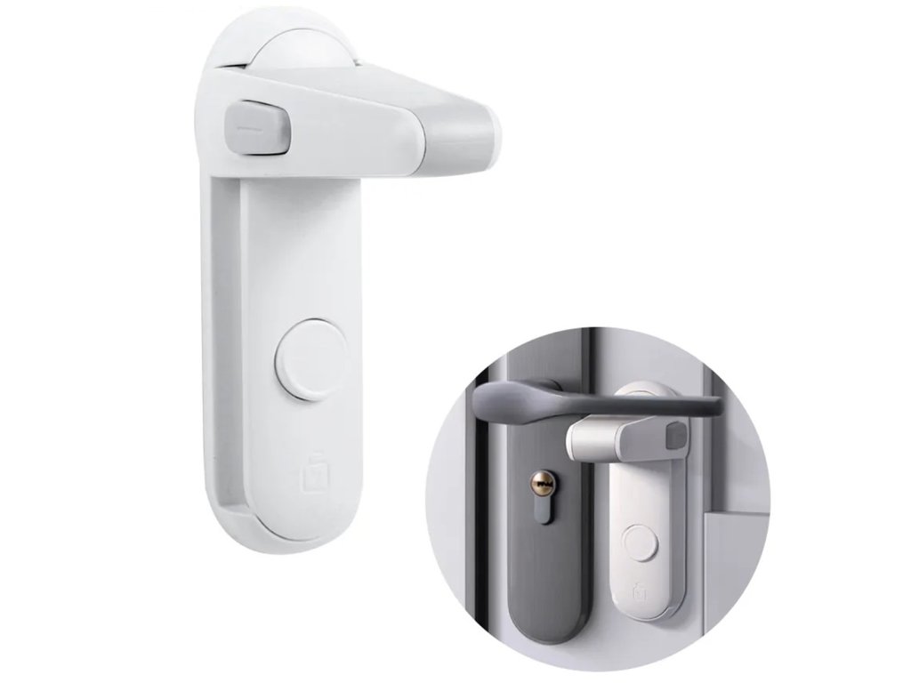 Ochrana kliky, která brání malým dětem v otevření dveří nebo okna. Má velkou základnu, která umožňuje pevnou instalaci ochrany za kliku pomocí oboustranné pásky. Zámek pevně drží na jakémkoli povrchu rámu dveří a okna. Rameno vyčnívá do hloubky až 7 cm a brání tak otevření kliky. Oboustranná tlačítka (na základně a rameni) umožňují rychlé odemčení zámku a použití dveří určenými osobami :)