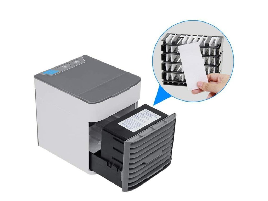 - Kompaktní, přenosná klimatizace napájená přes USB.