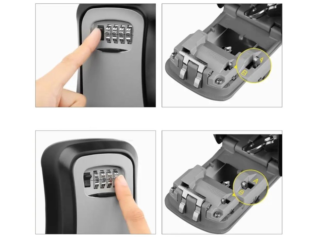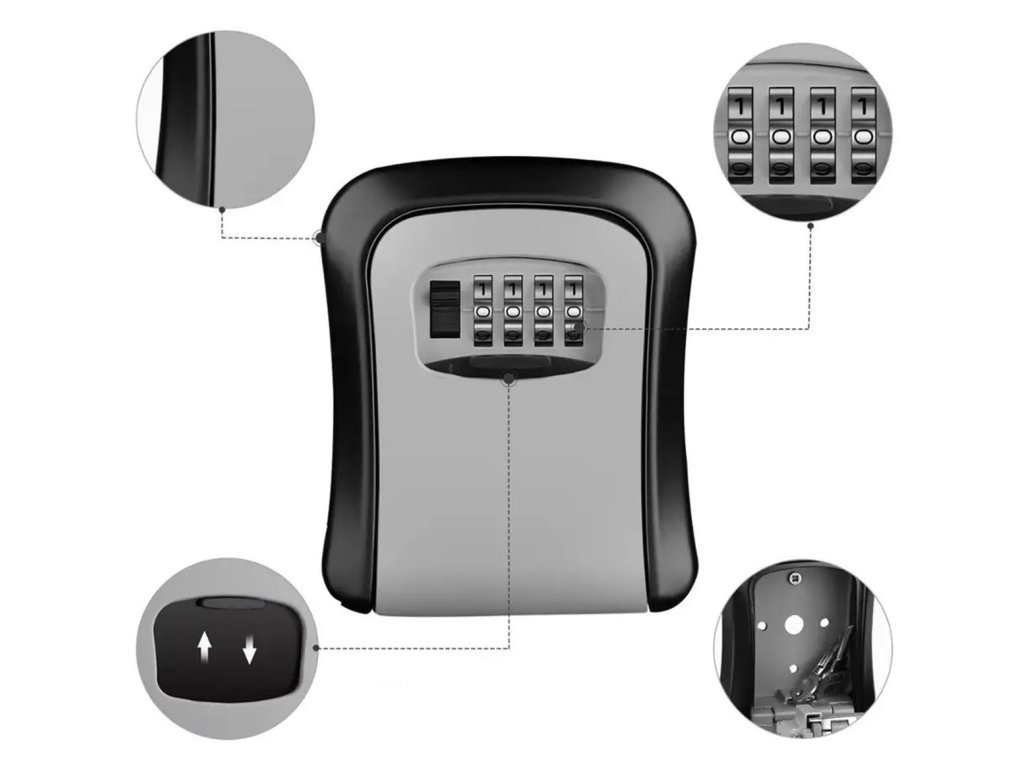 - Čtyřmístný kombinační zámek vám umožní bezpečně uložit klíče od domu.