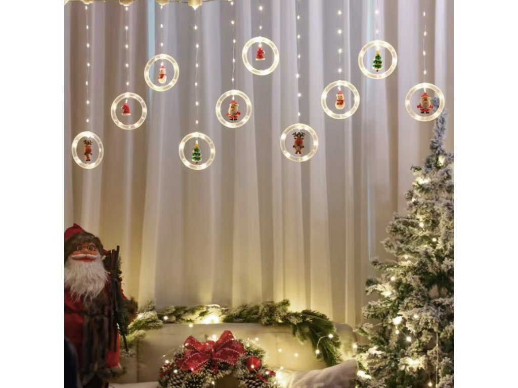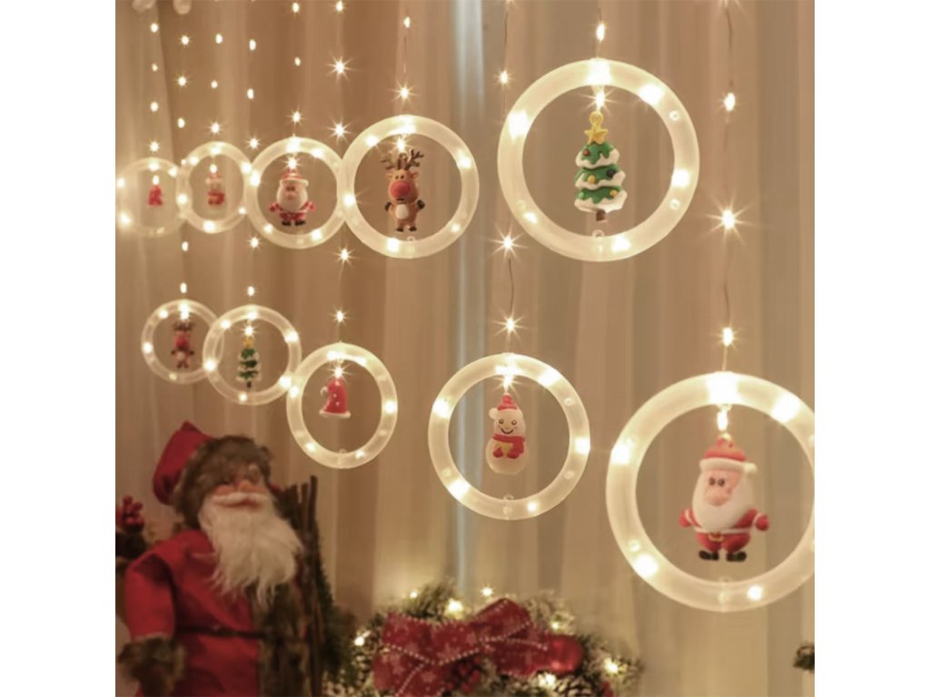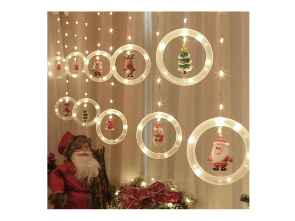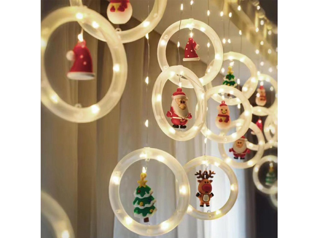 Sada 10 krásných LED vánočních světýlek ve tvaru kruhových kroužků. Celá jednotka je připevněna na dlouhém, průhledném kabelu, který ladí se stylem světýlek. Sada má použitelnou délku 300 cm, takže ji lze snadno zavěsit i na větší vánoční stromeček. Bude ideální vánoční dekorací, která stromu dodá zimní atmosféru. Světýlka jsou vybavena programátorem, který umožňuje vybrat si z osmi provozních režimů. Napájení pomocí USB kabelu eliminuje nutnost neustálého vyměňování baterií.