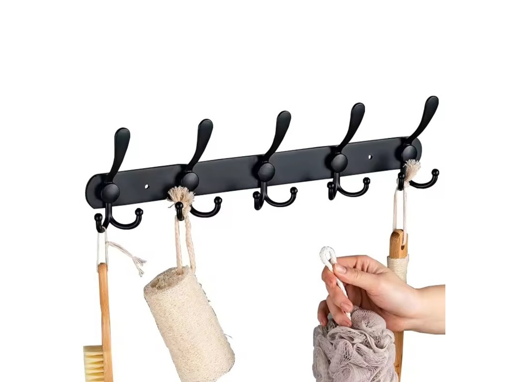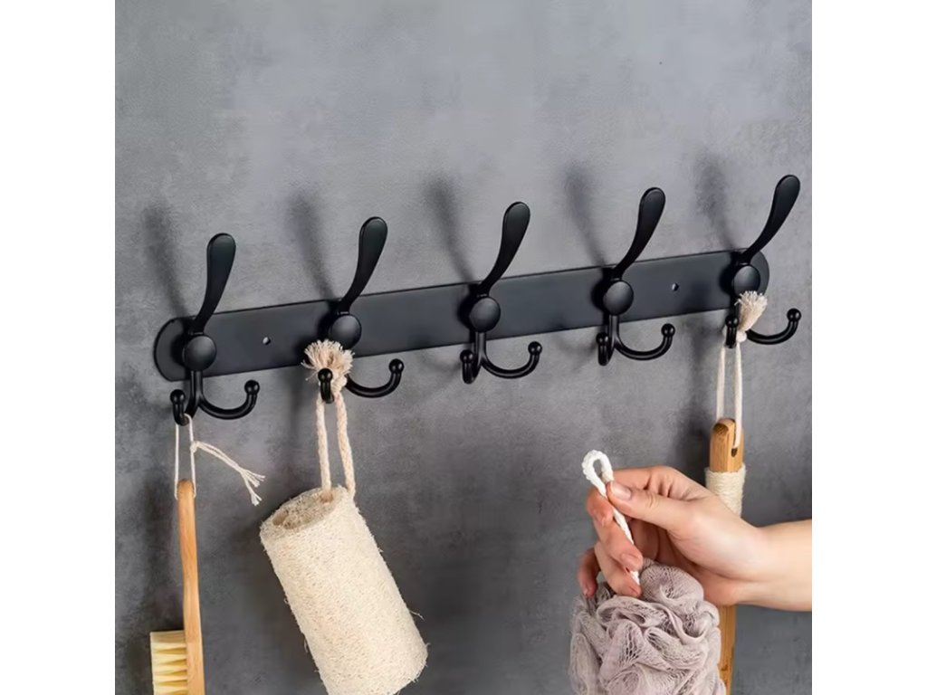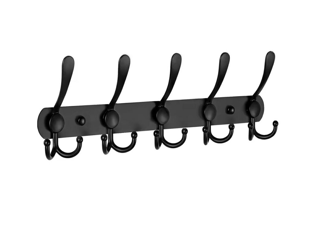 - Klasický černý věšák do předsíně s 15 háčky.