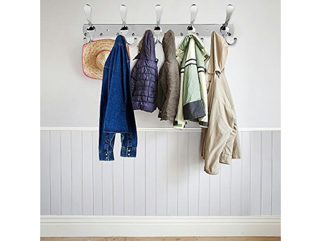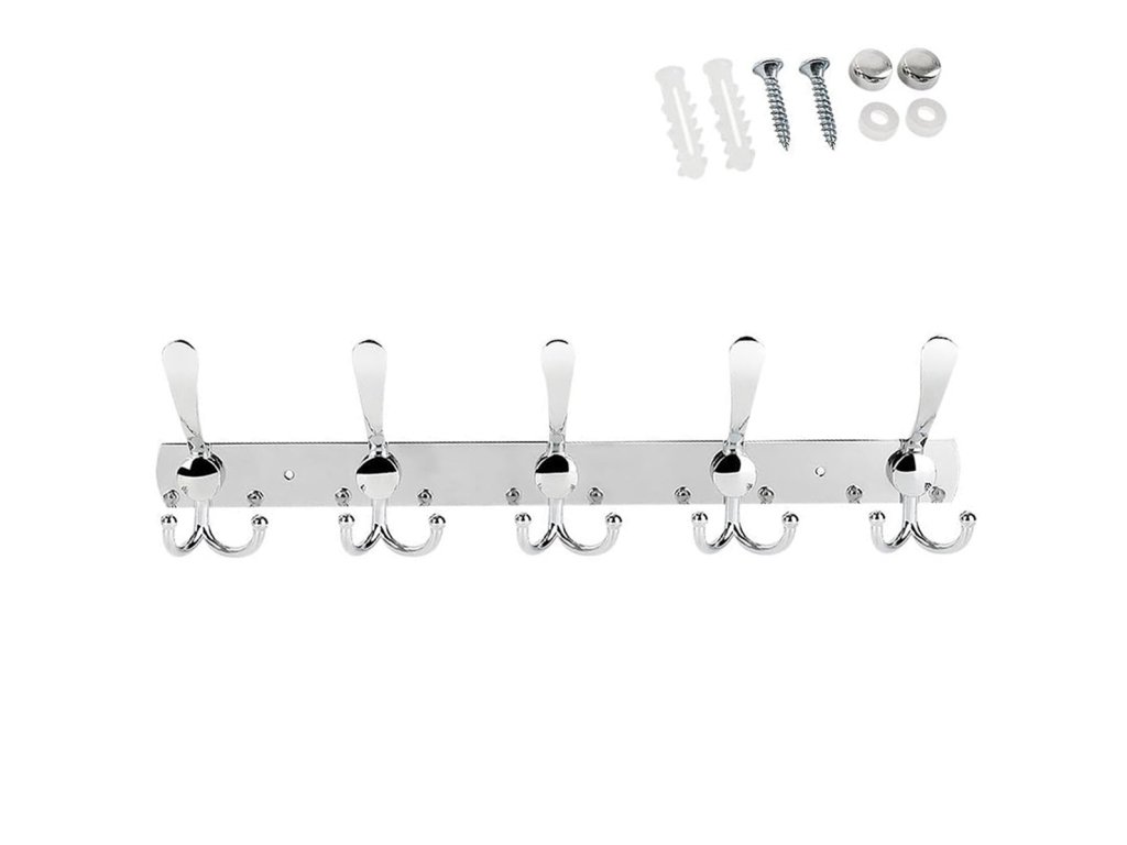 Klasický stříbrný věšák do předsíně s 15 háčky. Vyrobeno z pevné nerezové oceli. Je perfektní jako doplněk do předsíně, který vám umožní pověsit kabáty nebo bundy. Díky univerzálnímu designu se věšák hodí do každé místnosti. Snadná instalace pomocí přiložených šroubů a hmoždinek.