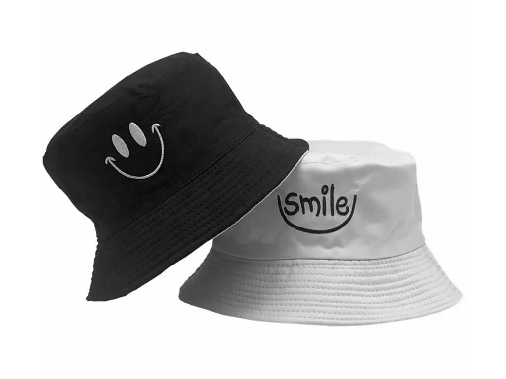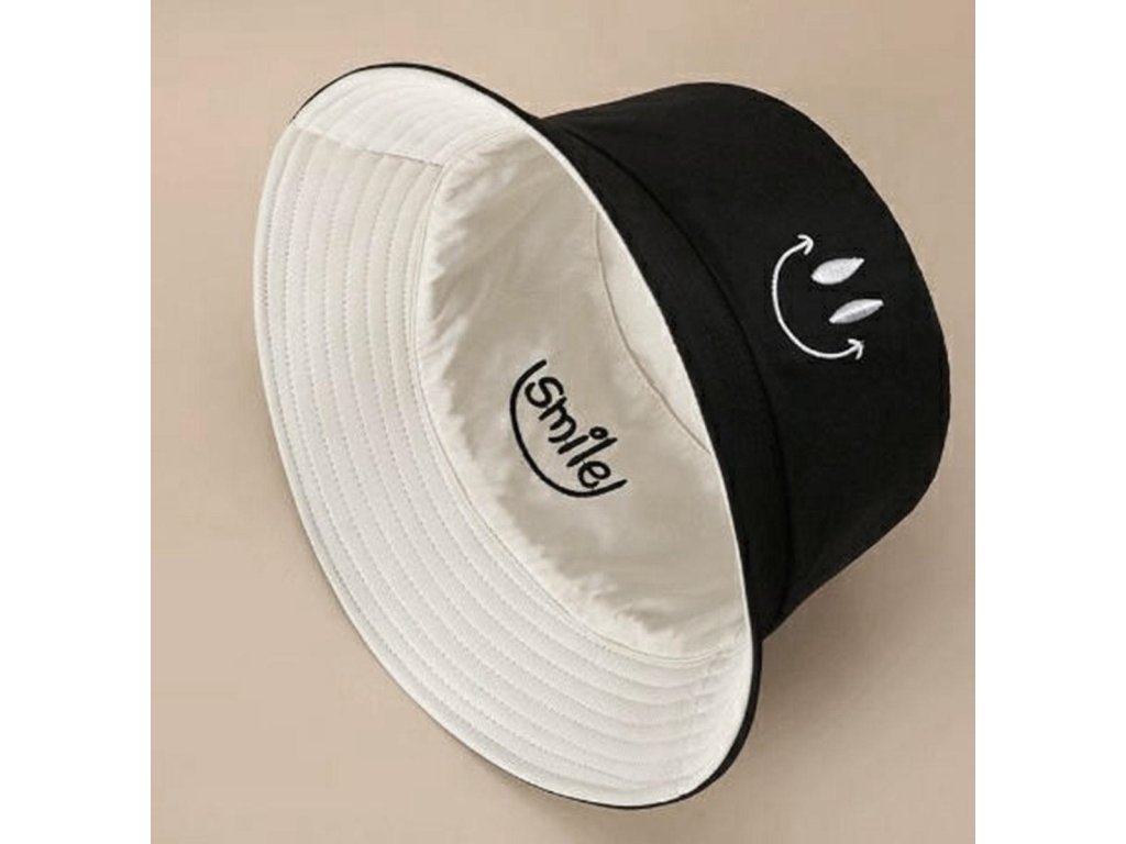 Klobouk. Pokrývka hlavy je oboustranná, stačí ji otočit a změní se její barva (z černé na žlutou a naopak). Design se směrem dolů rozšiřuje, aby chránil oči před sluncem. Je ideální pro každou příležitost.