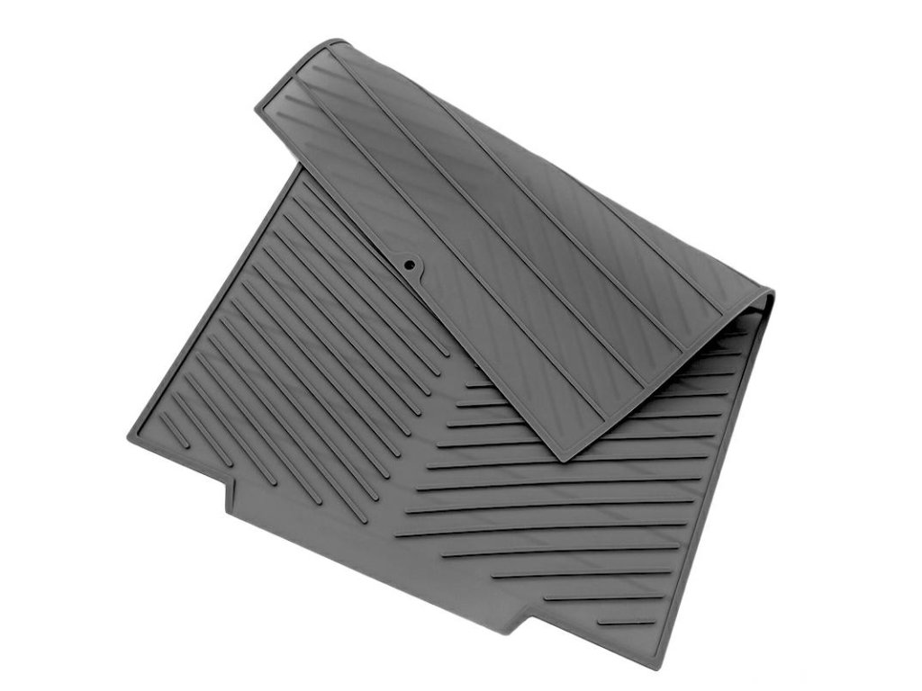 Tento odkapávač na nádobí je vyroben z PVC odolného vůči vysokým teplotám. Je neuvěřitelně prostorný a nezbytností do každé kuchyně nebo baru. Materiál je lehký a měkký, takže nepoškrábe povrch, na který je umístěn. Speciální drážky dokonale shromažďují vodu. Díky možnosti srolování jej snadno schováte do kuchyňské skříňky nebo jinak nevyužívaného rohu! Funguje také perfektně jako barový odkapávač na sklenice a hrnky. Jeho univerzální rozměry umožňují umístění do kuchyňské skříňky.