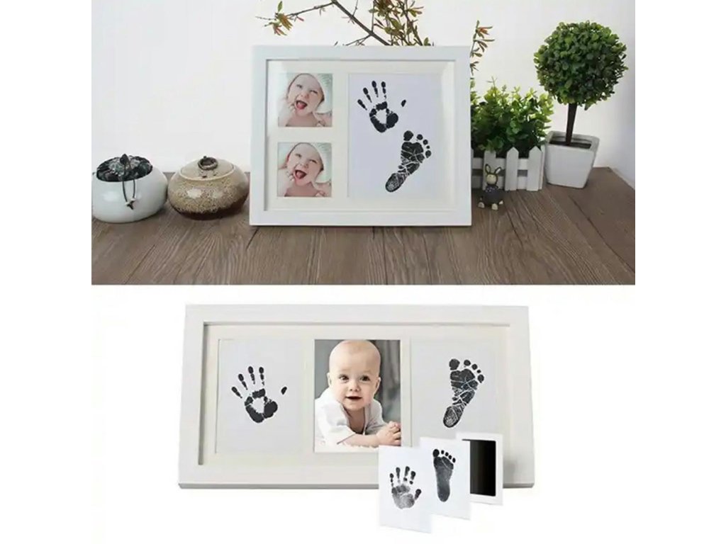 Sada na otisky rukou nebo nohou, která nezanechává skvrny. Je to rychlý a snadný způsob, jak si po narození dítěte vytvořit jedinečný suvenýr :) Tento produkt je zcela bezpečný pro děti. Aršík má ochrannou fólii, která zabraňuje kontaktu inkoustu s pokožkou. Inkoust odolný vůči povětrnostním vlivům zajišťuje, že váš suvenýr vydrží roky a nevybledne na světle.