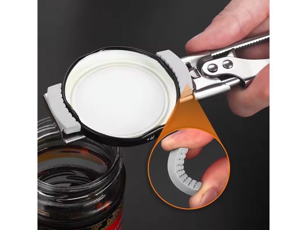 Univerzální, nastavitelný otvírák na lahve a sklenice. Umožňuje snadné a rychlé otevírání různých typů nádob a šroubovacích obalů. Nezbytný nástroj v každé kuchyni. Velká a pohodlná rukojeť usnadňuje otevírání víček.