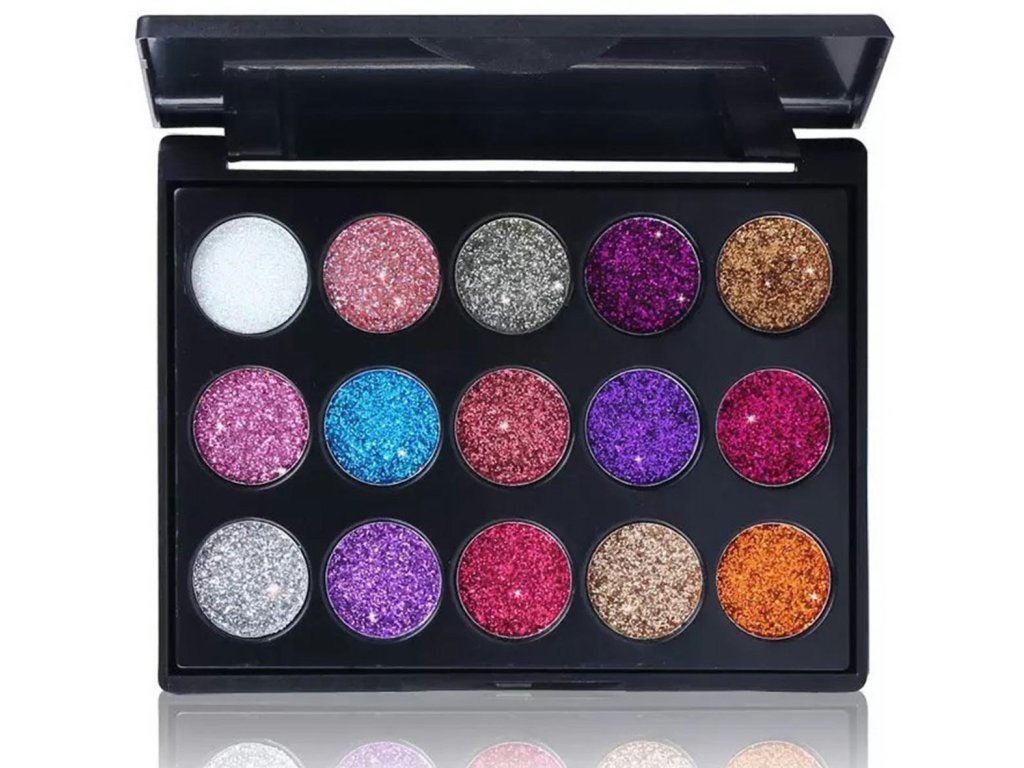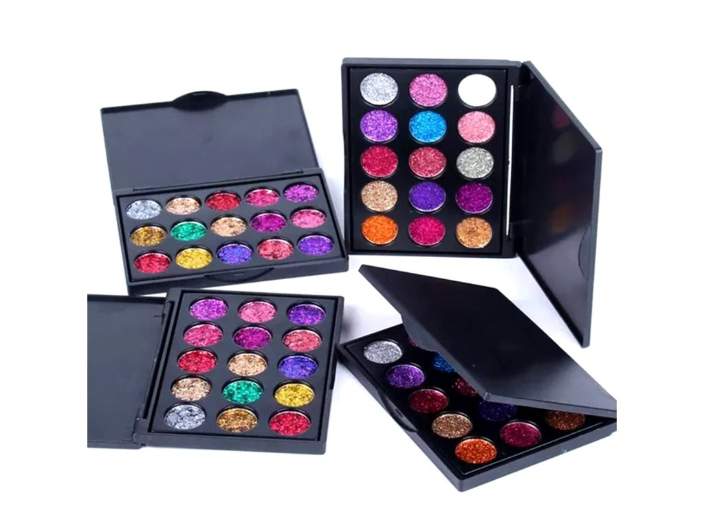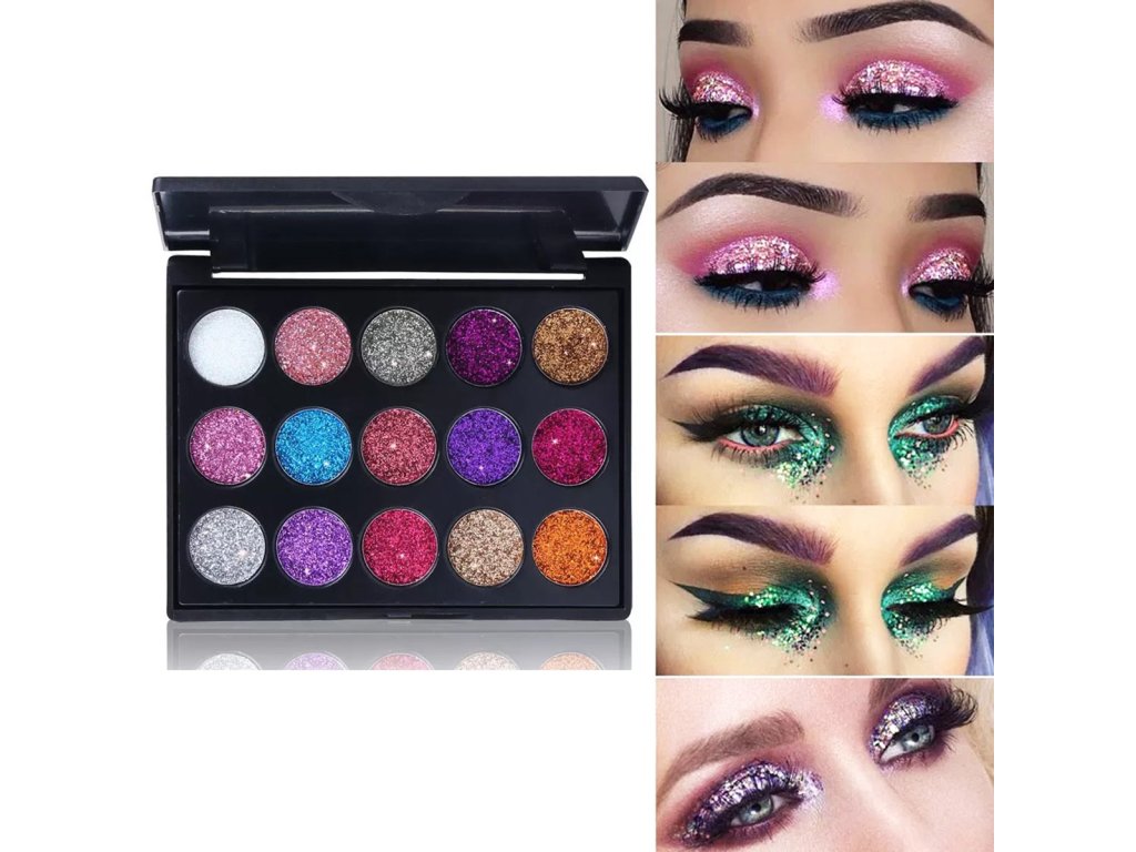 Sada 15ks lesklých očních stínů s třpytivým efektem. Uzavřený v elegantní černé krabičce umožňuje vytvořit dokonalý oční make-up. Rozmanitost barev umožňuje vybrat si make-up pro každou příležitost. Stíny jsou extrémně účinné a odolné, při nanášení a dalším používání se nerozmazávají. Všechny stíny v sadě lze smíchat dohromady a získat tak prakticky jakoukoli barevnou kombinaci díky použití stejných materiálů. Díky těmto očním stínům a vhodnému výběru barev získáte jedinečný oční make-up, který každého překvapí. Úspěšně omladíte svůj vzhled.