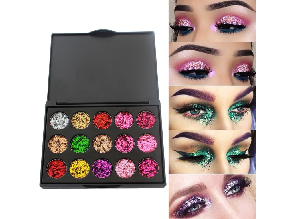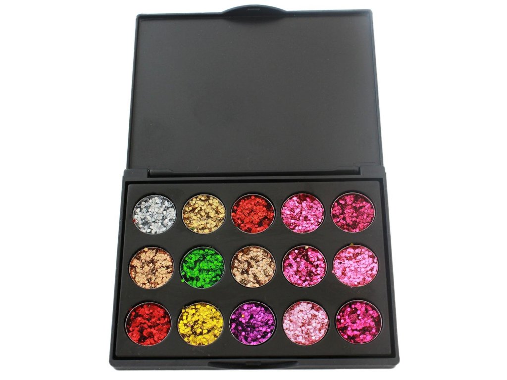 Sada 15 třpytivých očních stínů s třpytivým efektem. Uzavřený v elegantní černé krabičce umožňuje vytvořit dokonalý make-up očních víček. Rozmanitost barev umožňuje vybrat si make-up pro každou příležitost. Stíny jsou extrémně účinné a odolné, nerozmazávají se při aplikaci ani dalším používání. Všechny stíny v sadě lze smíchat dohromady a získat tak prakticky jakoukoli barevnou kombinaci díky použití stejných materiálů. Díky těmto očním stínům a správnému výběru barev získáte pozoruhodný oční make-up, který každého překvapí. Úspěšně omladíte svůj vzhled.
