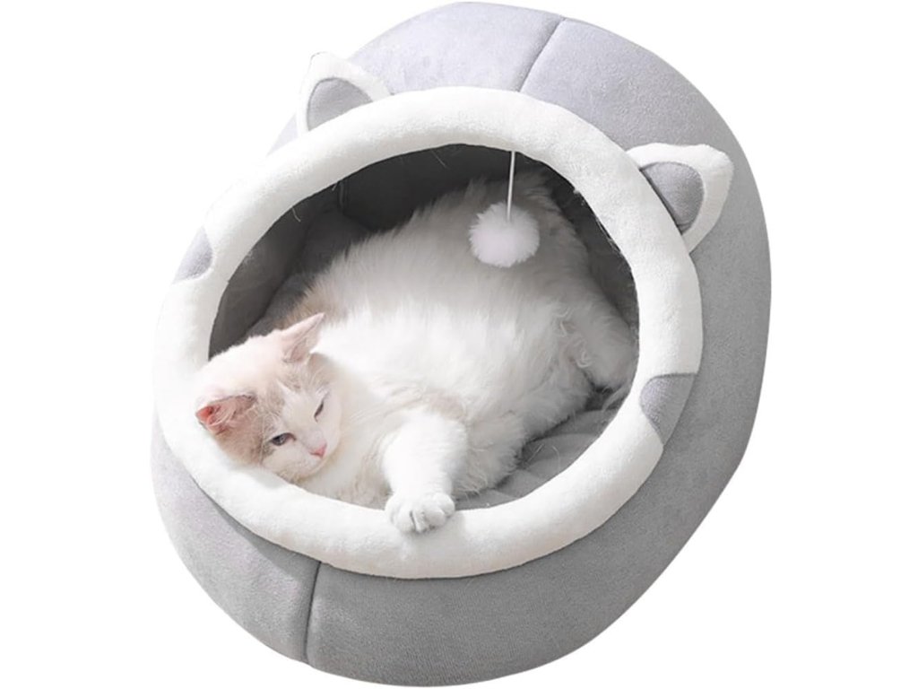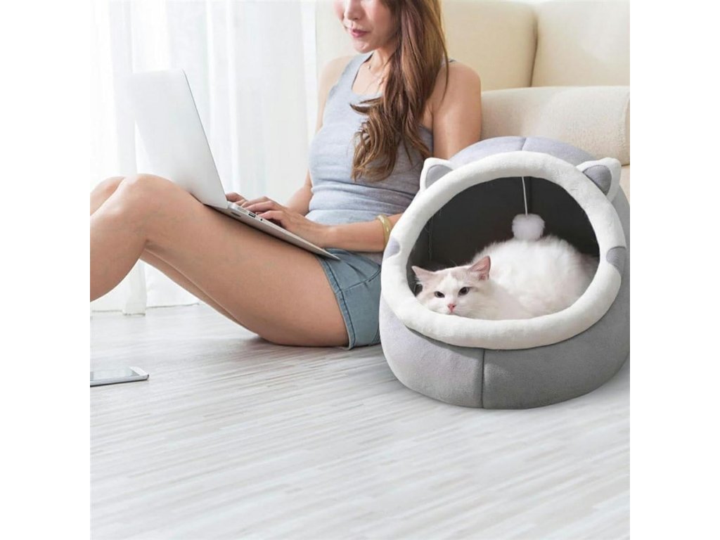 Pohodlný a esteticky příjemný pelíšek pro vašeho mazlíčka. Je velmi měkký a vhodný pro domácí mazlíčky. Jeho unikátní design se vyznačuje uzavřeným boxem s kočičími ušima. Silné stěny a protiskluzová látková základna zajišťují pohodlí a bezpečnost vašich mazlíčků. Pelíšek je vyplněn měkkou, deformovatelnou pěnou a má pohodlnou, měkkou základnu.Vlastnosti produktu: