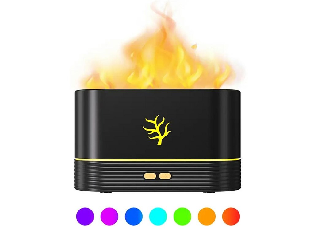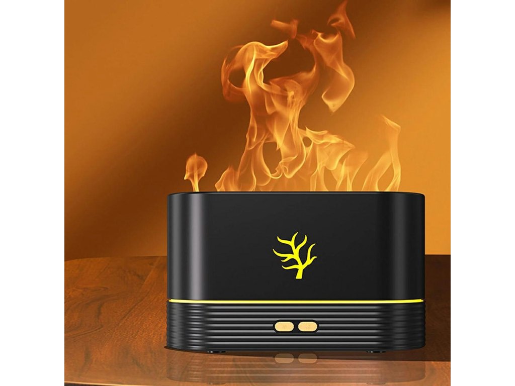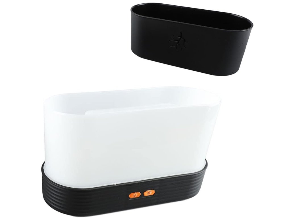 - Kompaktní a energeticky úsporný zvlhčovač vzduchu s barevným RGB LED podsvícením imitujícím plamen.