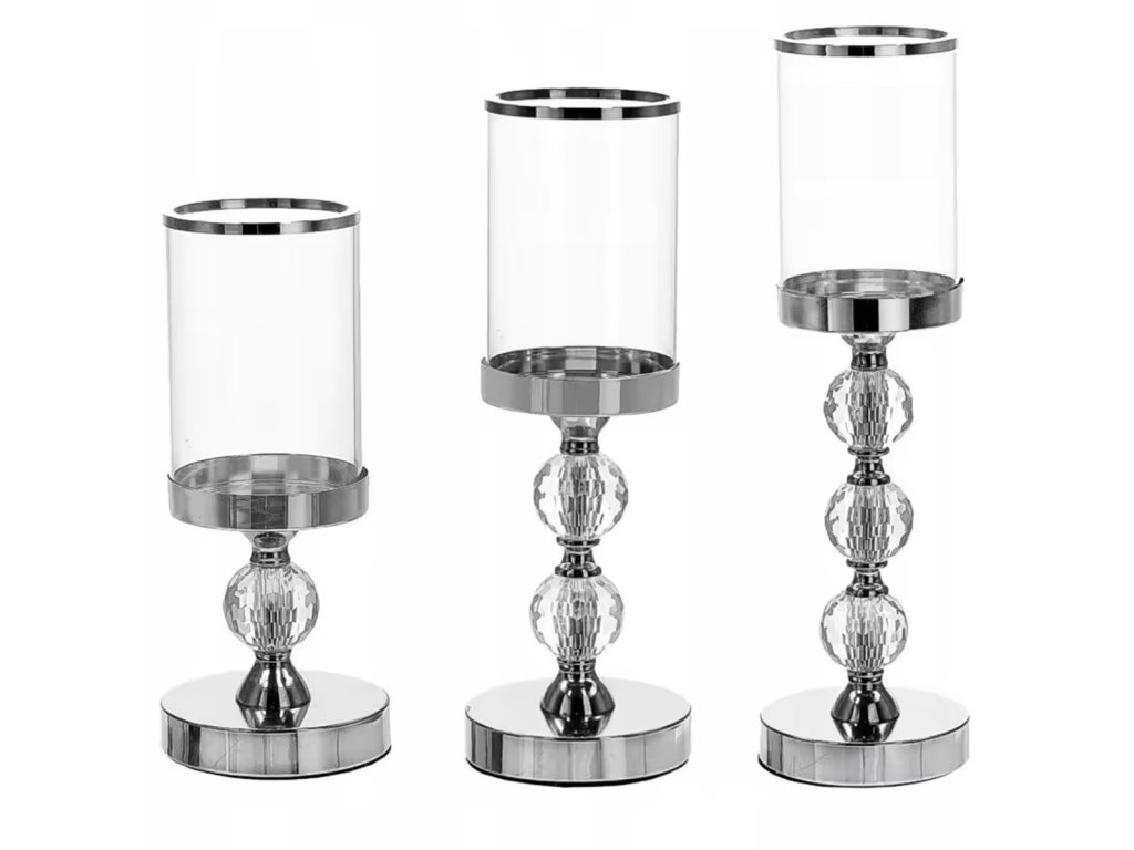 Dokonalý dekorativní prvek, který navodí příjemnou atmosféru v místnosti. Každý svícen má zrcadlové vložky, které zesilují světlo hořících svíček a dekorativní krystaly, které mají dekorativní funkci. Pevná základna zabraňuje převrácení svícnu a molitanové dno nepoškrábe povrch nábytku. Svícny se skvěle hodí jako dekorace do svatební síně nebo na večírek.
