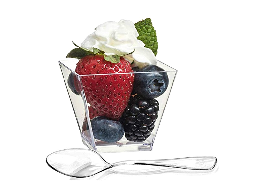 Sada 30 průhledných kelímků na svačiny, dezerty a zmrzlinu. Jsou ideální pro různé speciální akce. Vyrobeno z vysoce kvalitního průhledného plastu, který dokonale imituje sklo. Pevný plast je dostatečně odolný, aby vydržel celou párty. Nic vám nebrání je po vyprání znovu použít.