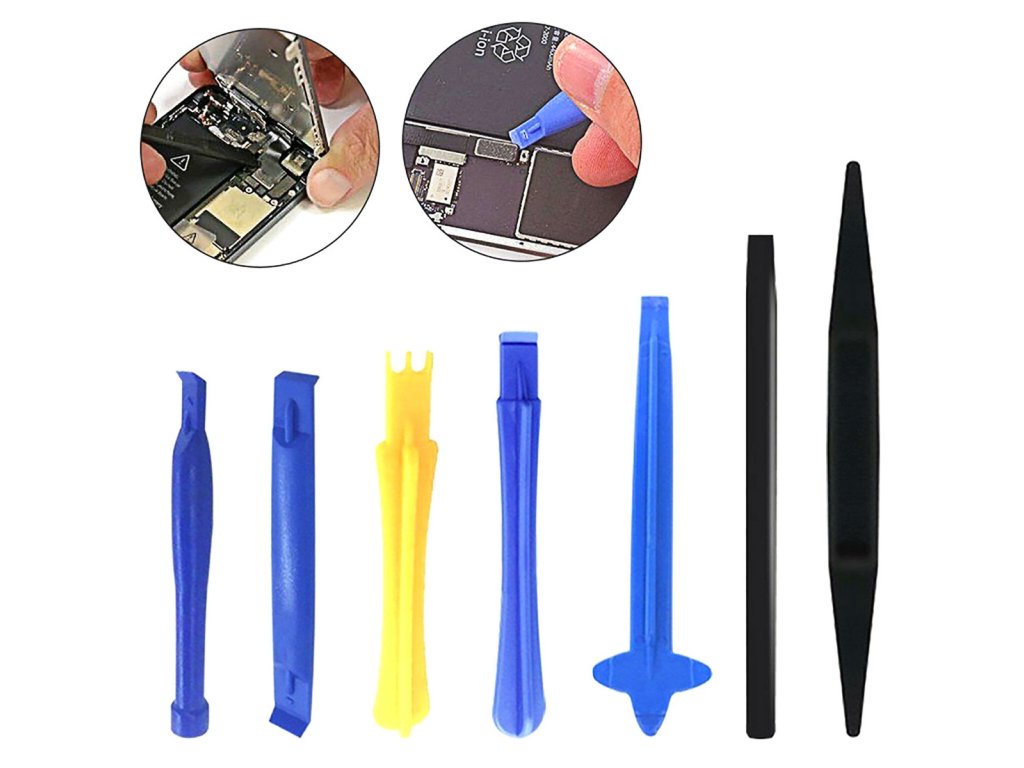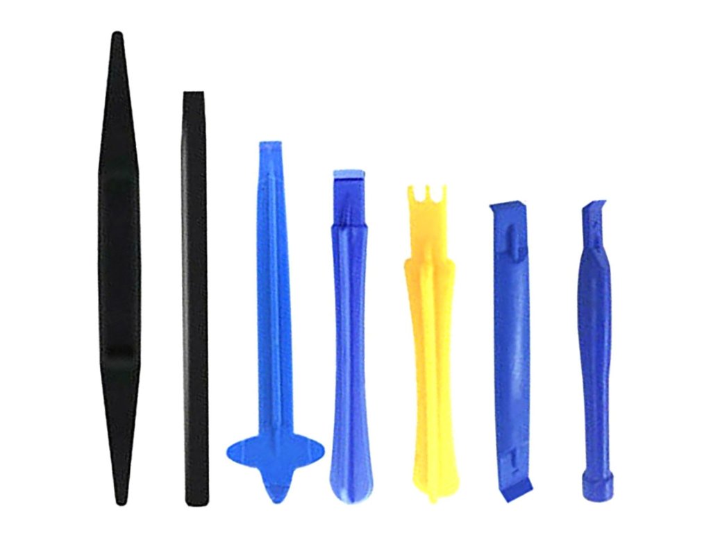 - Otvíráky z pevného plastu (různé tloušťky a pružnosti), díky kterým si nepoškodíte okraje pláště smartphonu při vypáčení jeho pláště.