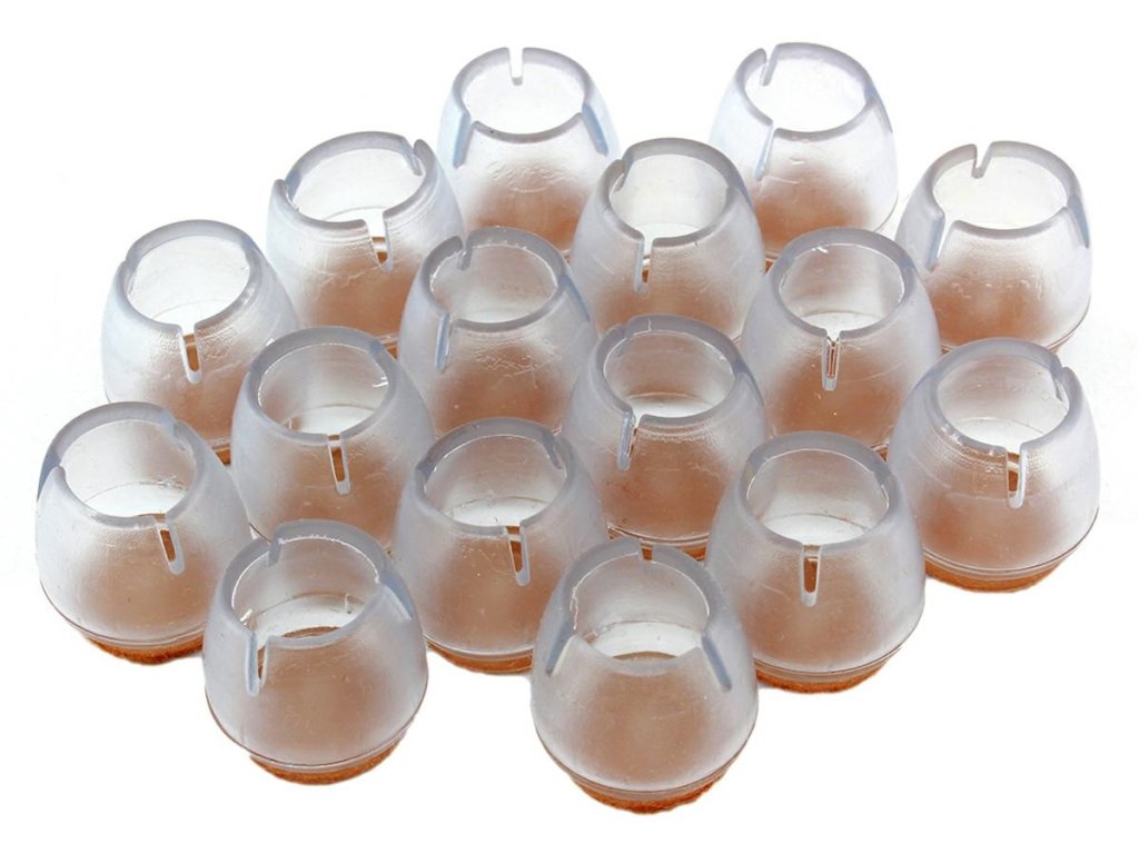 Sada 16 protiskluzových silikonových podložek pod nábytek. Vyrobeno z odolného a pružného silikonu, který zajišťuje vysokou odolnost a dobré uchycení k nohám nábytku. Spodní vrstva je podšitá plstí, která výborně odhluční a zabrání nepříjemným zvukům škrábání při stěhování nábytku. Skvěle fungují jako ochrana podlahy proti poškrábání.