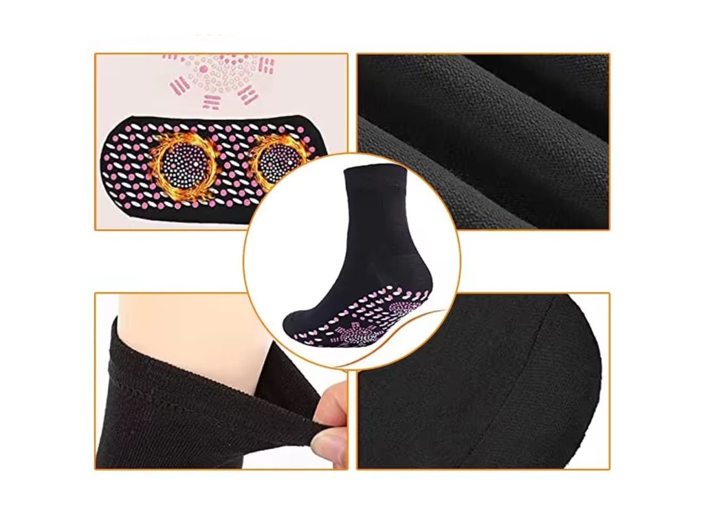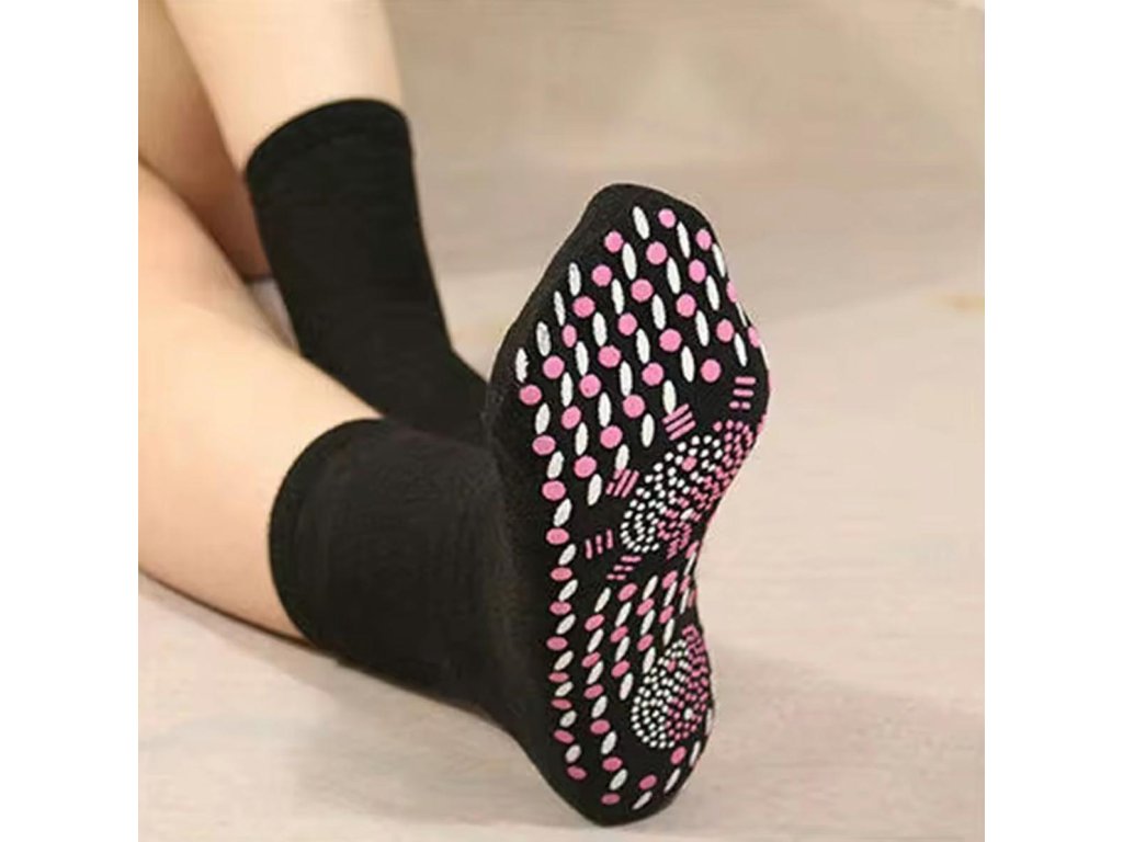 Samoohřívací termo ponožky. Vyrobeny z tlustého, teplého materiálu, poskytují vynikající ochranu před chladem. Turmalínová konstrukce umožňuje samoohřívání v chladných dnech. Vysoký střih a přiléhavý materiál poskytují velké pohodlí a zabraňují klouzání. Materiál je prodyšný, zabraňuje pocení nohou a zvyšuje pohodlí.