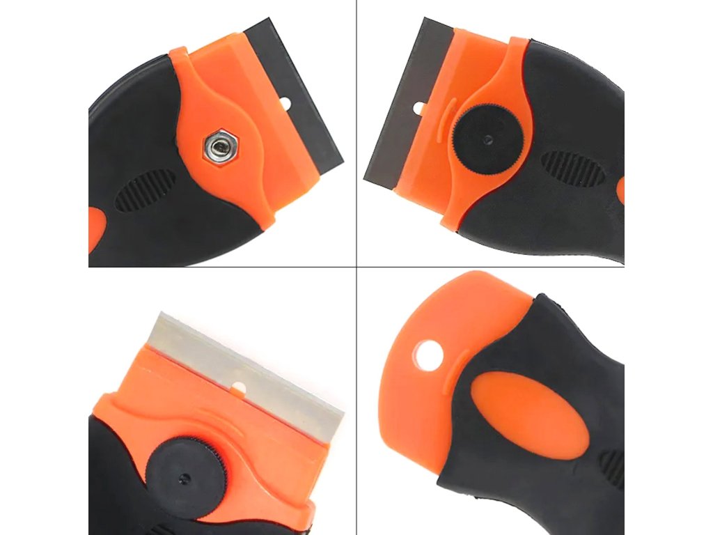 - Stalowe ostrze pozwala błyskawicznie usunąć uporczywe zabrudzenia z powierzchni płyty czy szkła.