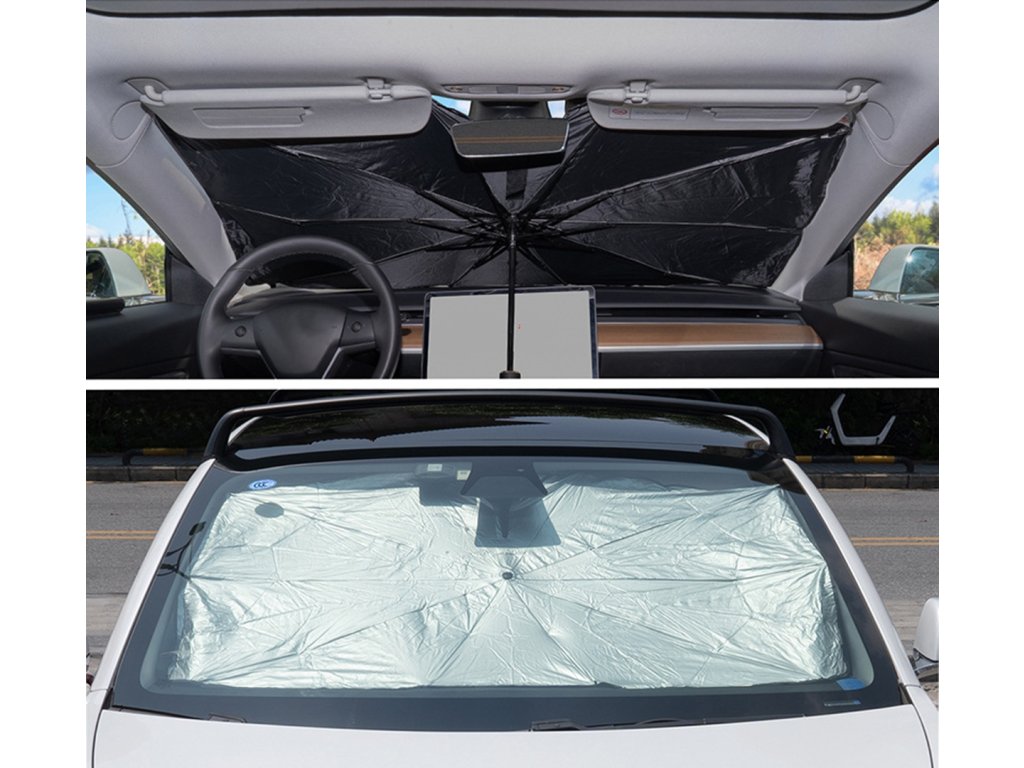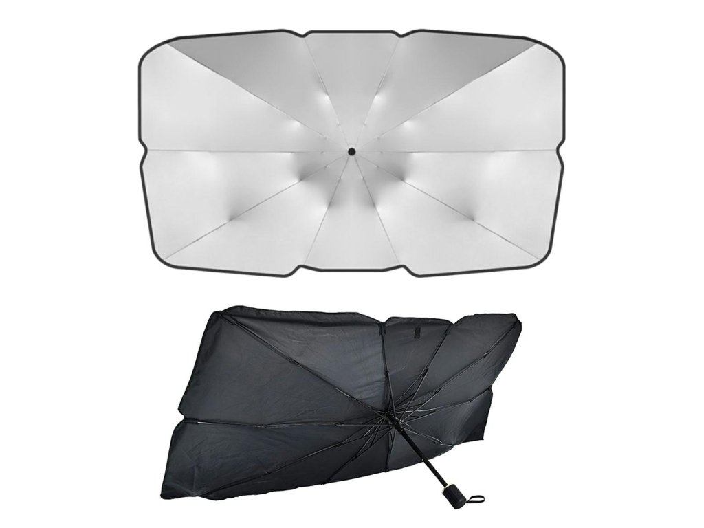Sluneční clona na autoskla do šířky 130 cm. Chrání interiér vozu před nadměrným slunečním zářením a výrazně snižuje zahřívání vozu. Extrémně snadná instalace na okno vašeho auta díky rychlému skládání a rozkládání jako běžný deštník. Je plně univerzální - pasuje na každé okno ve všech vozidlech.