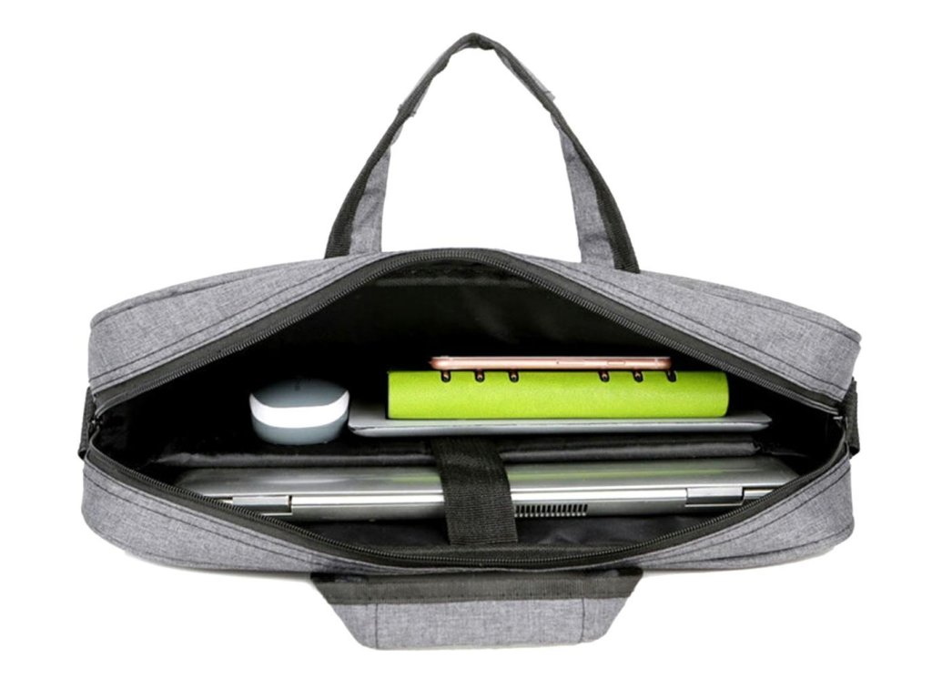 Elegantní taška na notebook s maximální úhlopříčkou 15,6". Taška je vybavena měkkou hlavní kapsou s možností nastavení velikosti přihrádky na notebook a další kapsou na poznámky, pera nebo telefon. Vyztužené madlo a pevné zipy umožní dlouhé a bezproblémové používání výrobku.