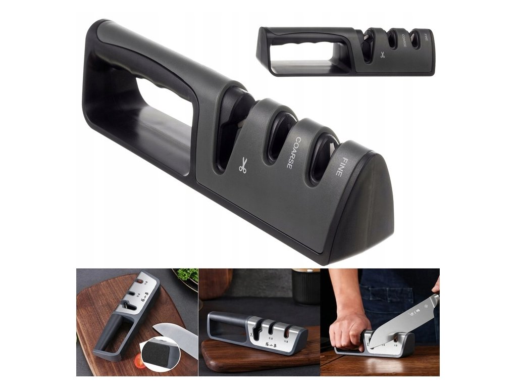 Tento 3v1brousek na nože vám umožní rychle a přesně nabrousit jakýkoli kuchyňský nůž, i ten nejtupější.