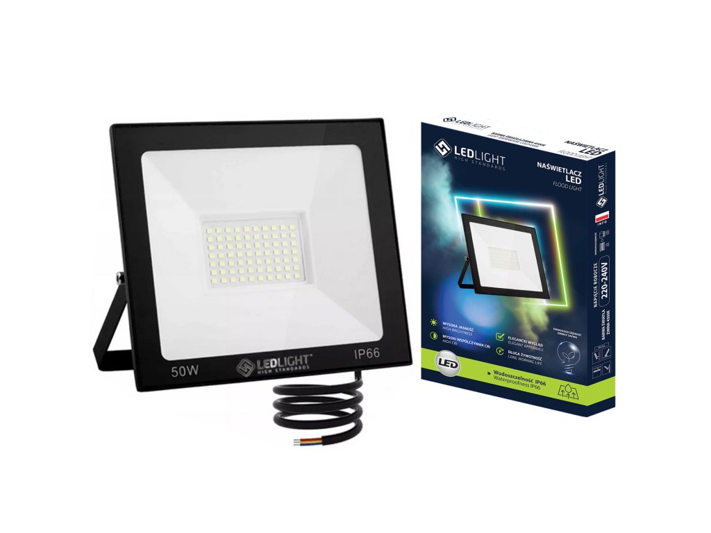 HALOGENOVÉ LED SVĚTLO STUDENÁ BÍLÁ IP66 50W PREMIUMVysoce kvalitní LED světlomet v pevném hliníkovém pouzdře .