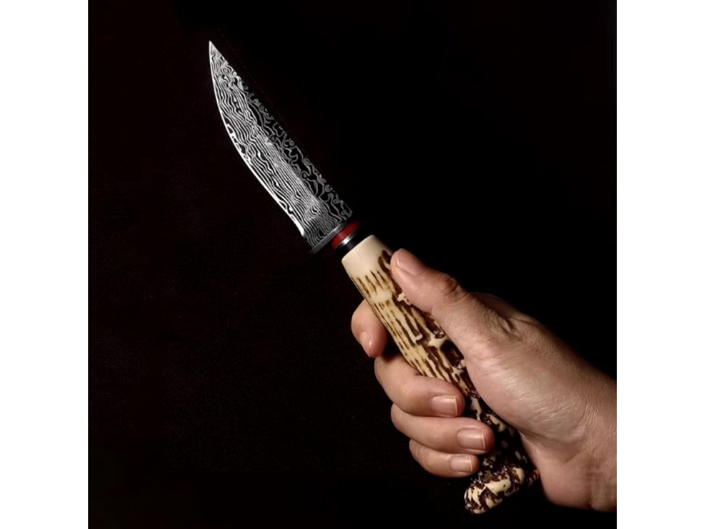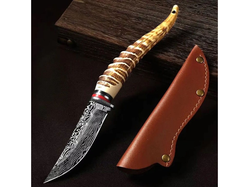 Rukojeť je vyrobena tak, aby připomínala paroží divokého zvířete.