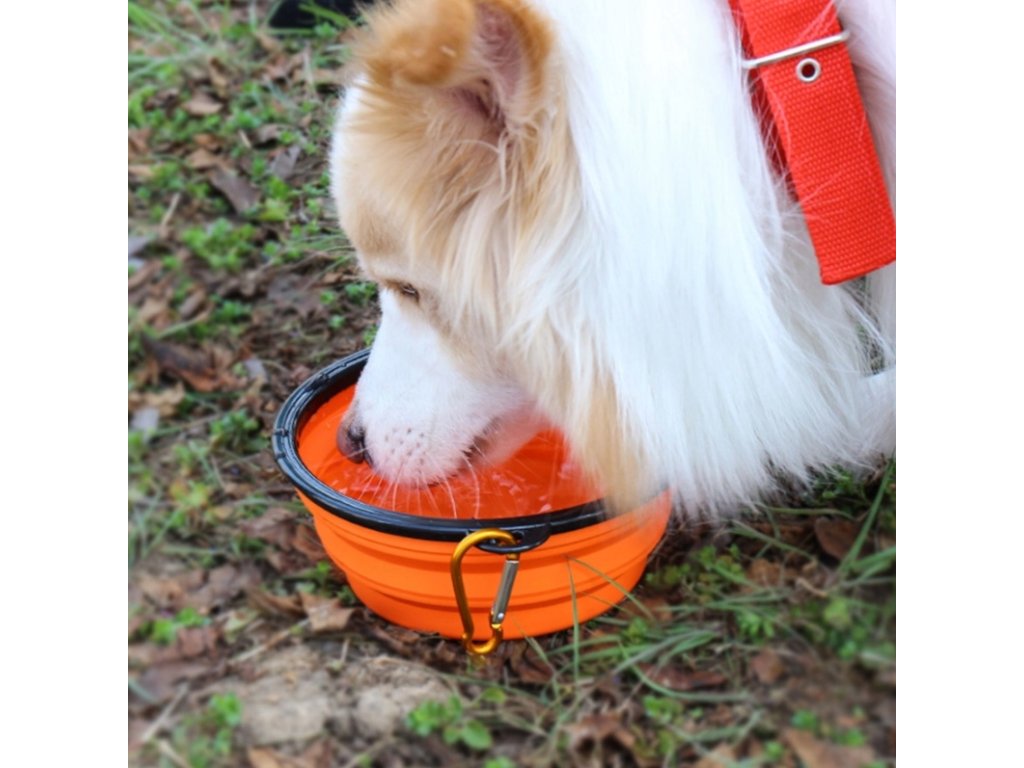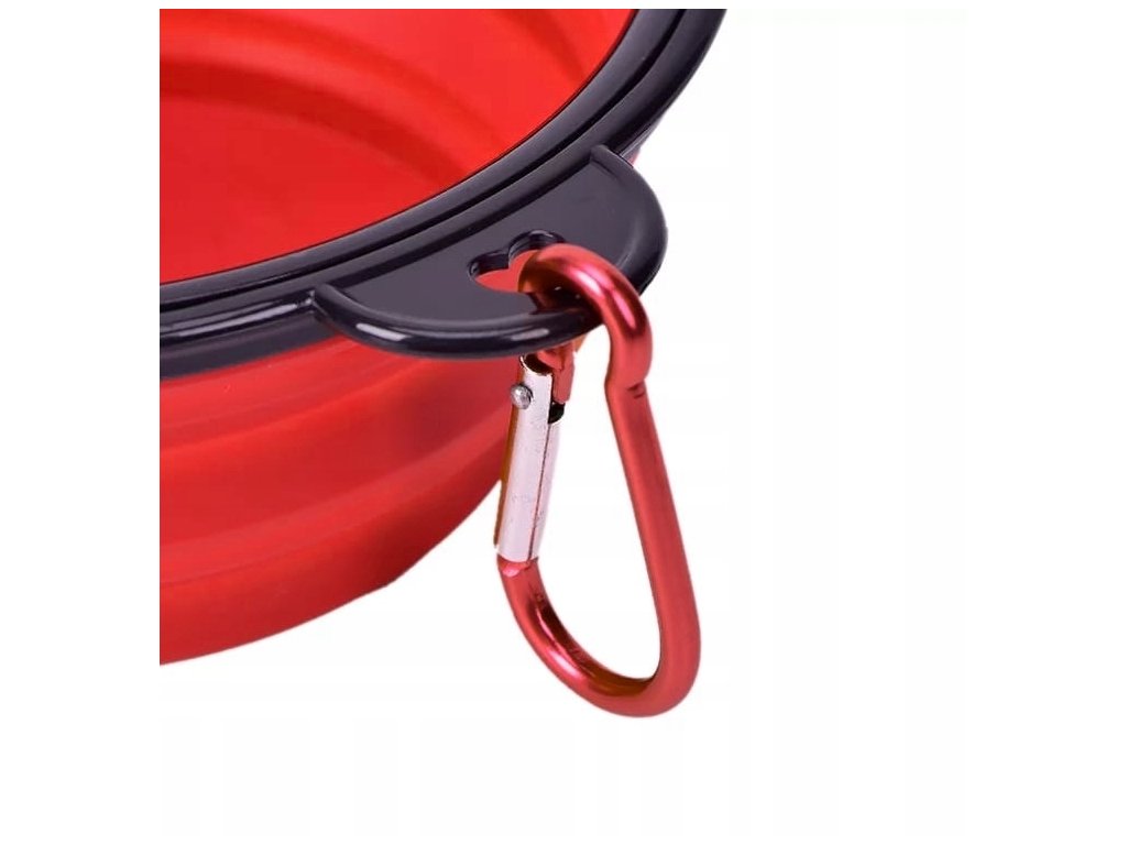 Miska jest składana, co jest jej dużą zaletą, ponieważ nie zajmuje dużo miejsca, a w razie potrzeby, można przypiąć ją do plecaka lub paska za pomocą karabińczyka.