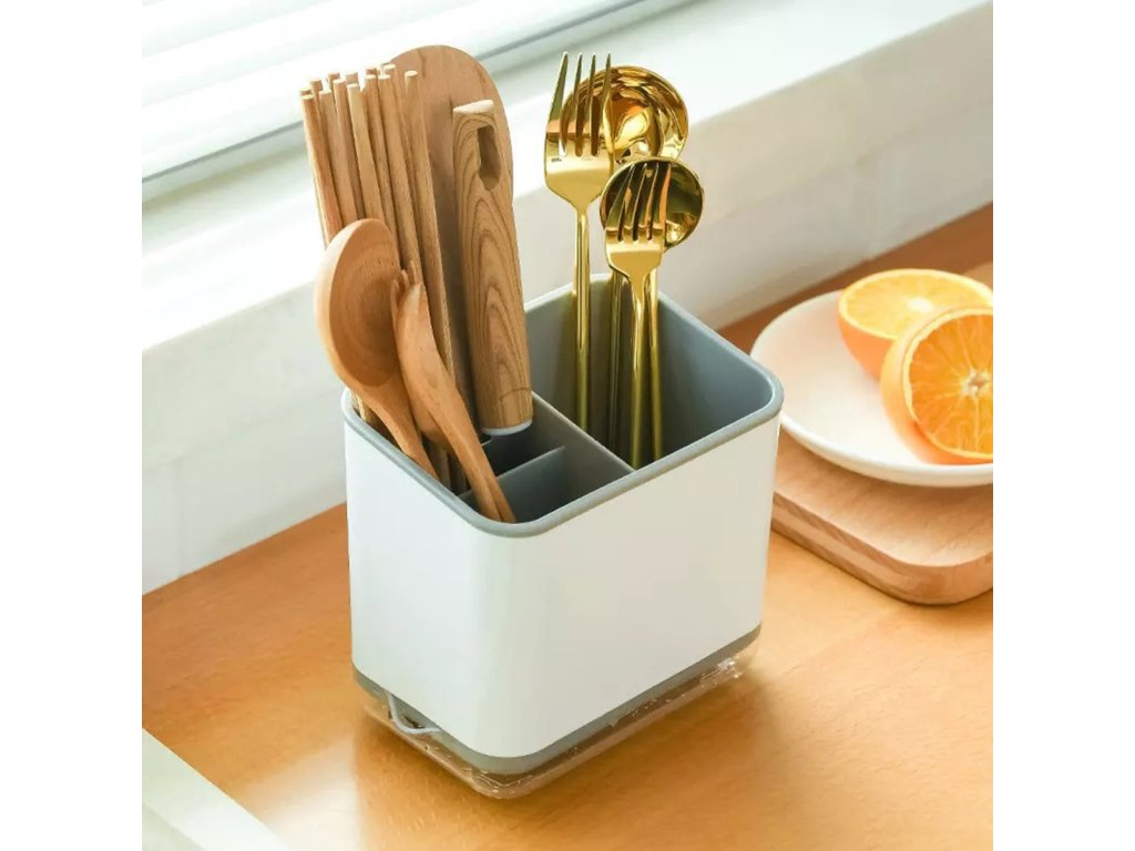 - Kompaktní nádoba na příbory s odkapávačem.