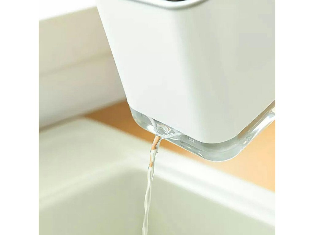 - Ve spodní části organizéru se nachází průhledný odkapávač, který lze pohodlně vyprázdnit pomocí speciálního otvoru.