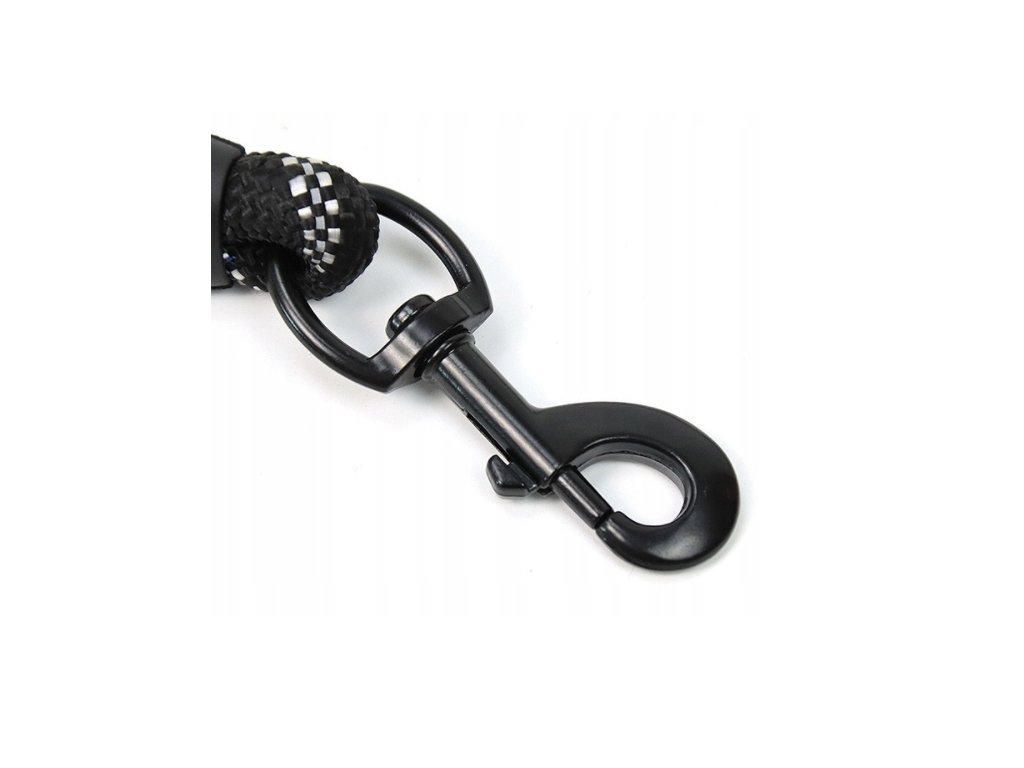 Kovová karabina s vysokým leskem je odolná a má otočný rozsah 360 stupňů . Reflexní