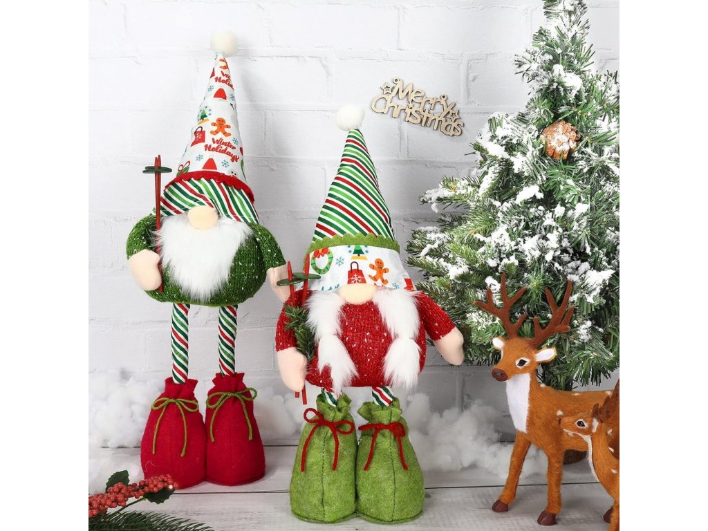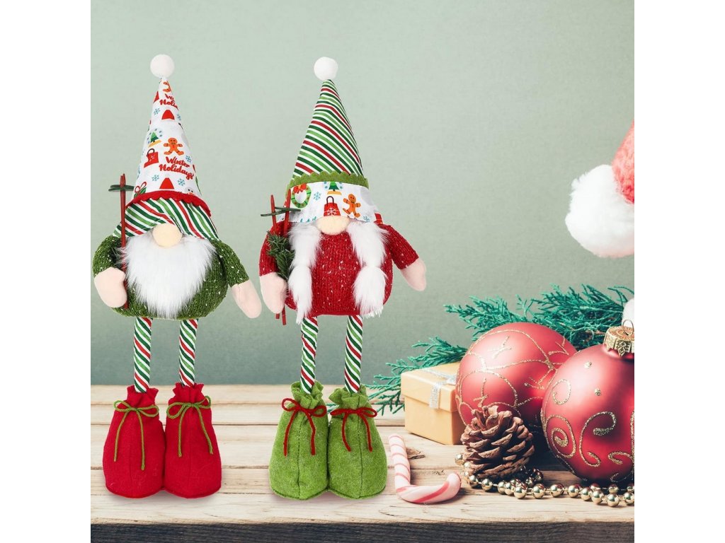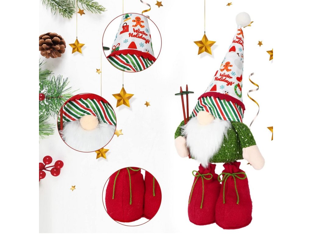 Trpaslík, Gnóm, Lyžař, Vánoční teleskopická figurka, Dekorace, Ozdoba, 54 cm.Tento vánoční gnóm je nádhernou bytovou dekorací, která vypadá krásně a vytváří v domácnosti sváteční atmosféru.