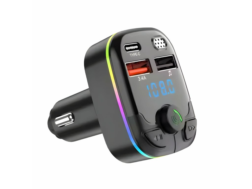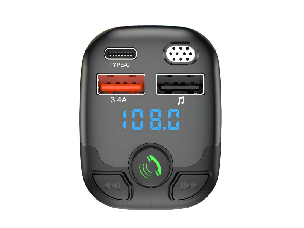 FM vysílač s Bluetooth 5.0 a jedním portem USB-A a jedním portem USB-C. Navíc je vybaven přehledným LCD displejem, slotem pro karty SD/SDHC a mikrofonem.