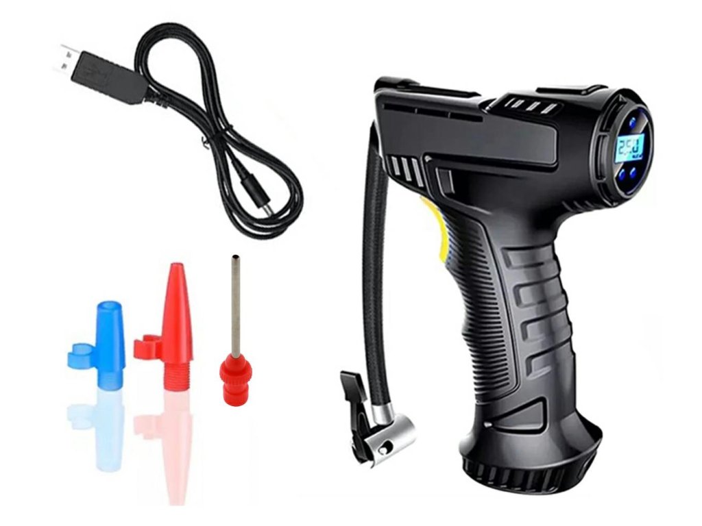 Kompaktní, bezdrátová hustilka pneumatik. Napájení pomocí vestavěné baterie, nabíjení přes USB kabel (součástí balení). Pohodlná rukojeť usnadňuje napumpování pneumatik, zatímco přehledný LCD displej usnadňuje nastavení vyhrazeného tlaku vzduchu a výměnu jednotky. Pohodlná, flexibilní hadice a další vyměnitelné koncovky (3 kusy) usnadňují práci s přístrojem.