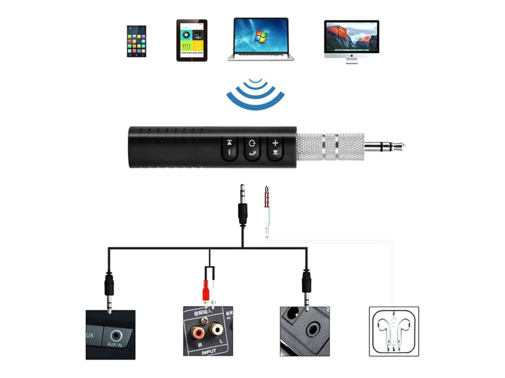 - Stačí jej umístit do 3,5mm konektoru pro sluchátka libovolného zvukového zařízení a spárovat s telefonem přes Bluetooth!