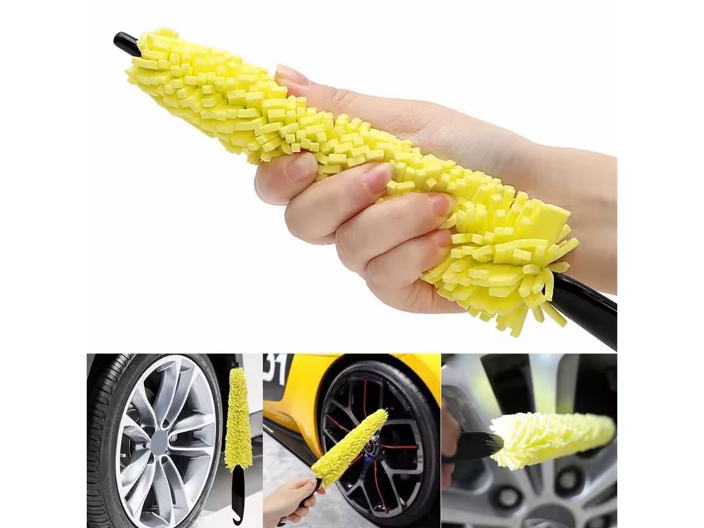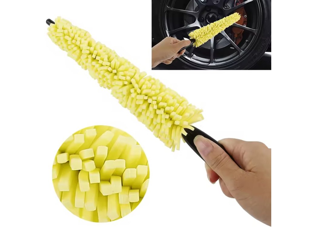 - Kompaktní houbový kartáč na čištění kol a ráfků automobilů.