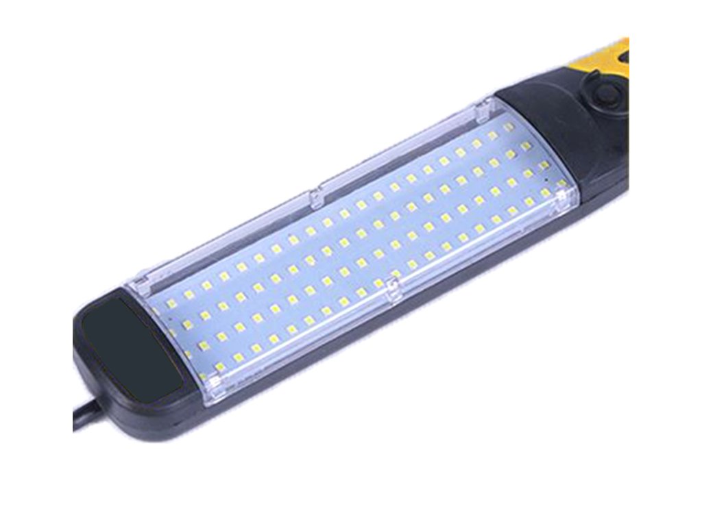 Spolehlivá, svítící LED lampa pro kutily vybavená 100 silnými LED diodami - nenahraditelná v dílnách a službách, garážích pro kutily, na kempech, nočních výletech, ve stanu nebo i při výměně kola. Vybaveno praktickým fyzickým vypínačem a dlouhým 8metrovým napájecím kabelem, který výrazně usnadňuje osvětlení pracovního prostoru mimo zásuvku. Lampa má také magnetický držák a otočný háček, který usnadňuje použití, když jsou obě ruce obsazené.