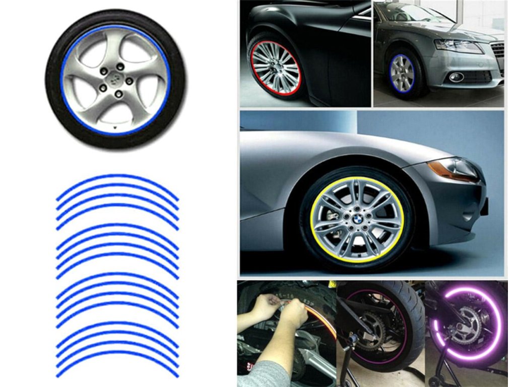 Reflexní samolepky na kola a pneumatiky automobilů nebo motocyklů. Zlepšují viditelnost a bezpečnost na silnici a zároveň vytvářejí úžasný efekt, zejména v noci.