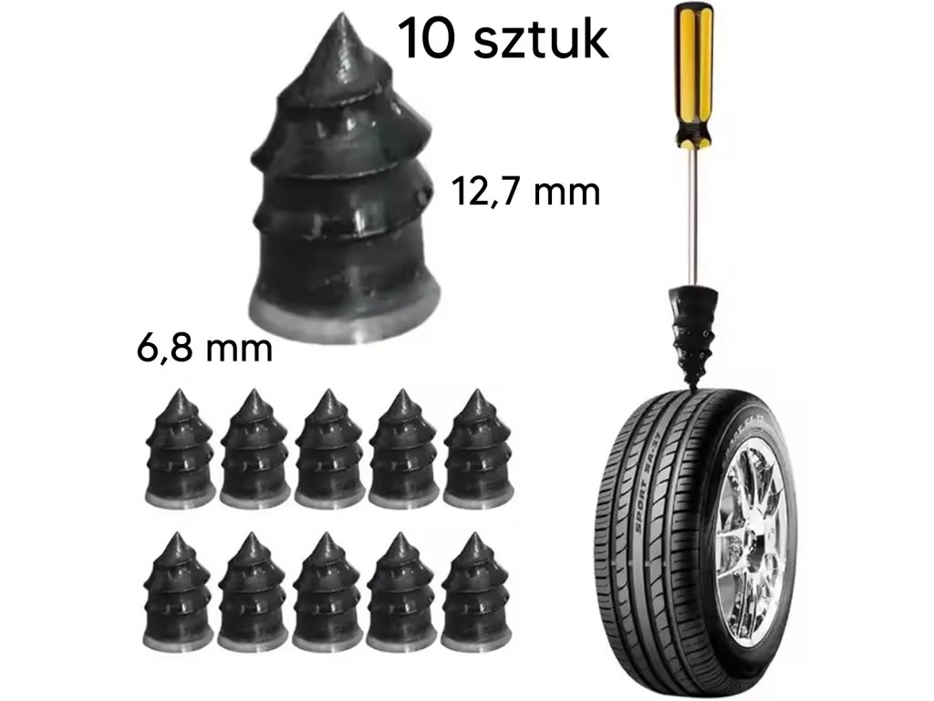 Fantastická opravná sada pro rychlou opravu pneumatik jízdních kol a automobilů. Poslední (a hlavně efektivní) záchranné lano v krizových situacích na cestách. Sada obsahuje 10 vulkanizačních šroubů o průměru 6,8 mm a délce 12,7 mm.